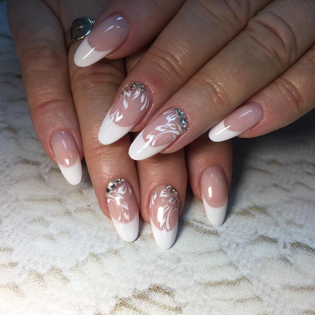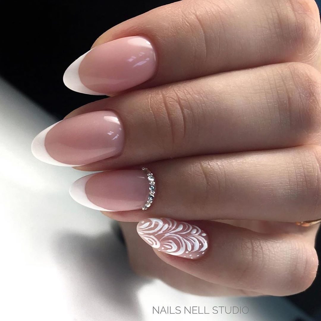 Стиль френч идеально подходит для такого торжественного случая, как свадьба. Немного оригинальных элементов и дизайн станет более роскошным или нежным. Красивый декор в светлой палитре подойдет не только невесте, но и для выпускного вечера или вечеринки.
