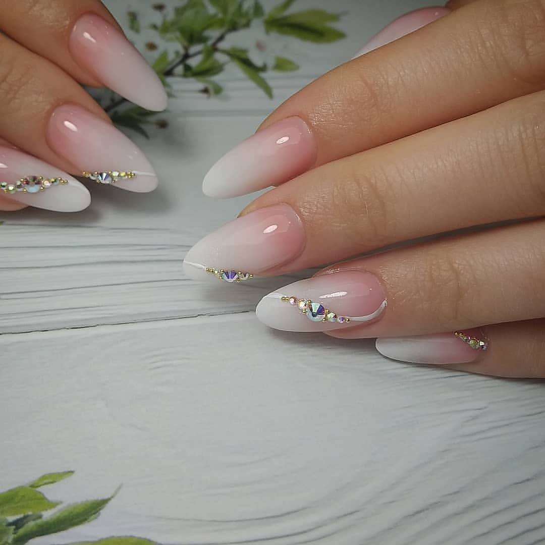 Трудно найти девушку, которая не любила бы стразы. Разница лишь в количестве этого украшения. По умолчанию принято считать, что все блестящее — это о праздничном образе. Однако грамотный подход и чувство стиля помогает использовать камни в повседневном маникюре. Минимальное количество стразов на ногтях идеально впишутся даже в строгий дресс-код.