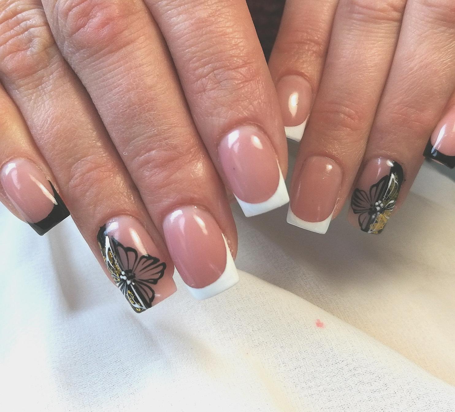 - Сегодня французский маникюр считается самым популярным видом дизайна для наращенных и натуральных ногтей. Создать его на натуральных ноготках можно при помощи обычного лака. При этом цвет может быть не обязательно белый, но и черный, красный, розовый и т.д.