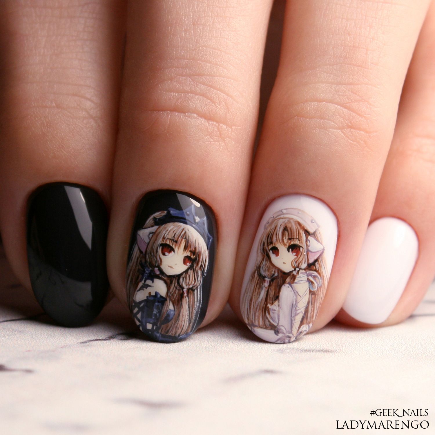 Маникюр с аниме узорами лучше смотрится если он выполнен с помощью художественной росписи. Найти слайдеры с аниме рисунками достаточно сложно, но если вы встретите такие, то без сомнений приобретите. Такие узоры смотрятся на ногтях достаточно ярко и выразительно. Слайдеры с героями аниме пригодятся вам, если вы предпочитаете интересные и заметные нейл-арты.