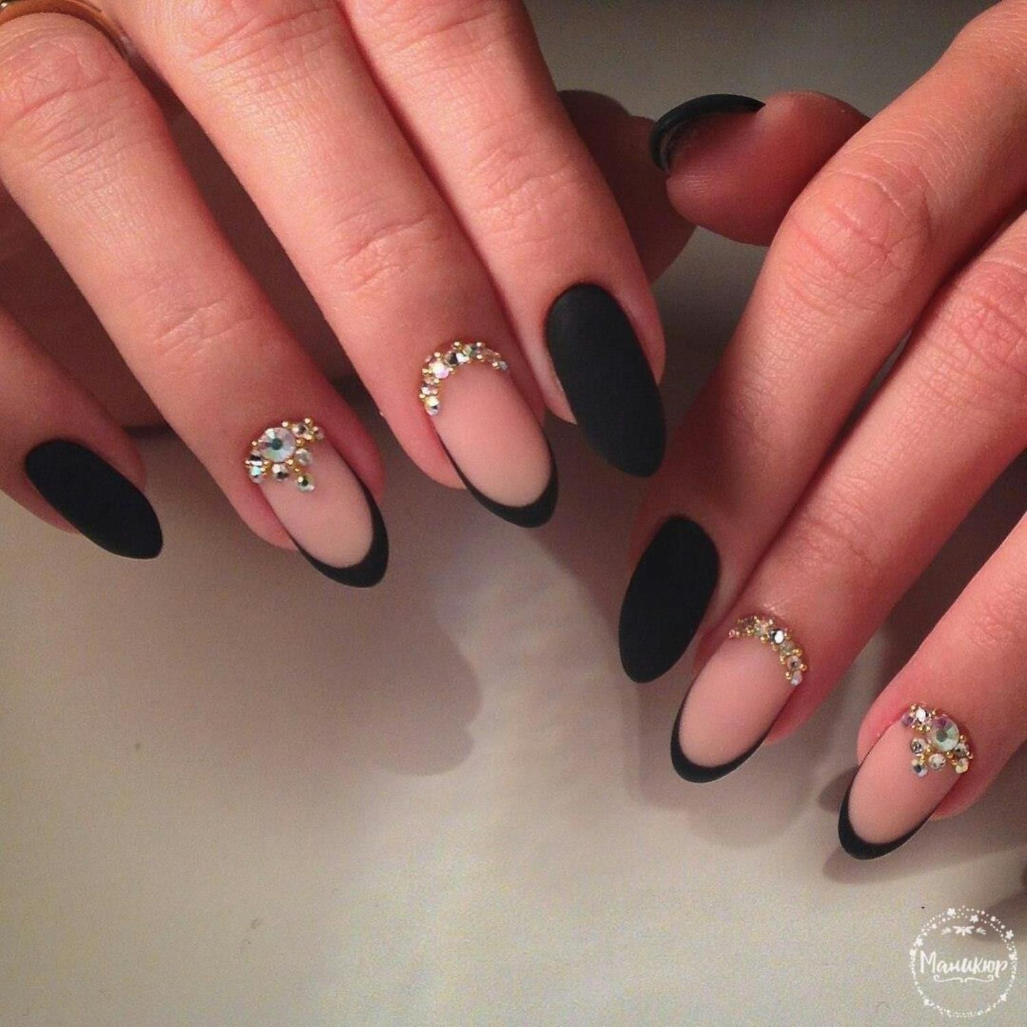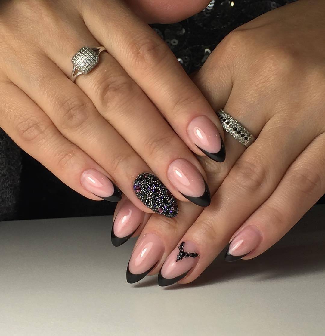 Круглая форма визуально схожа с миндалевидной, с тем лишь исключением, что она более плавная, без резких очертаний и углов. Какую бы форму ноготка вы ни предпочли, на них великолепно будет выглядеть черный френч.