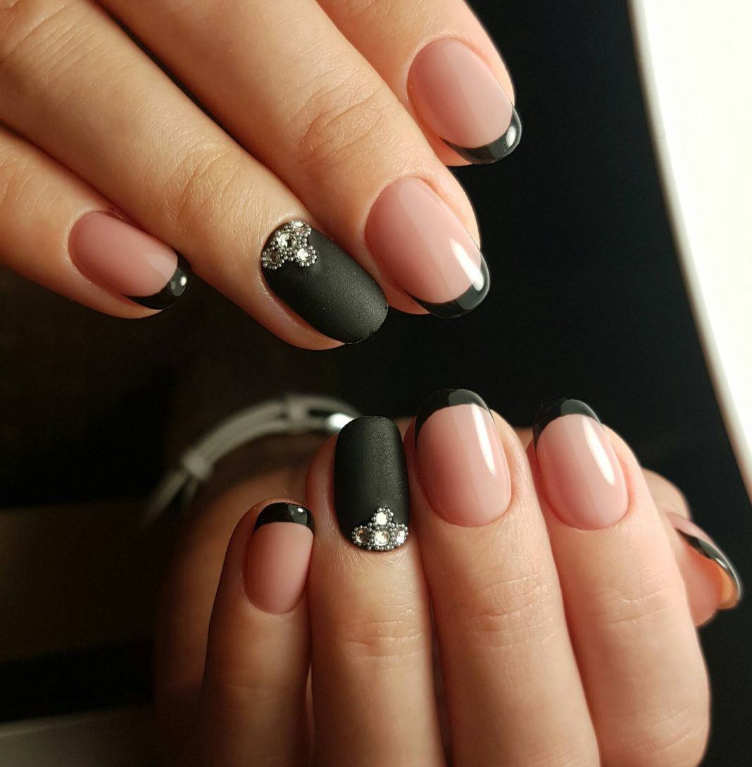 Черный гель-лак отлично гармонирует с белым, розовым цветом. Черный френч прекрасно смотрится с глиттером, фольгой по краю ногтя, бульонками, камифубуками. Сегодня черный маникюр не воспринимается столь неоднозначно, как ранее. Френч в темных тонах – это признак хорошего вкуса и стиля. Выполняйте черный френч не только в глянцевом покрытии, выбирайте для дизайна матовый гель-лак и декор акриловой пудрой.