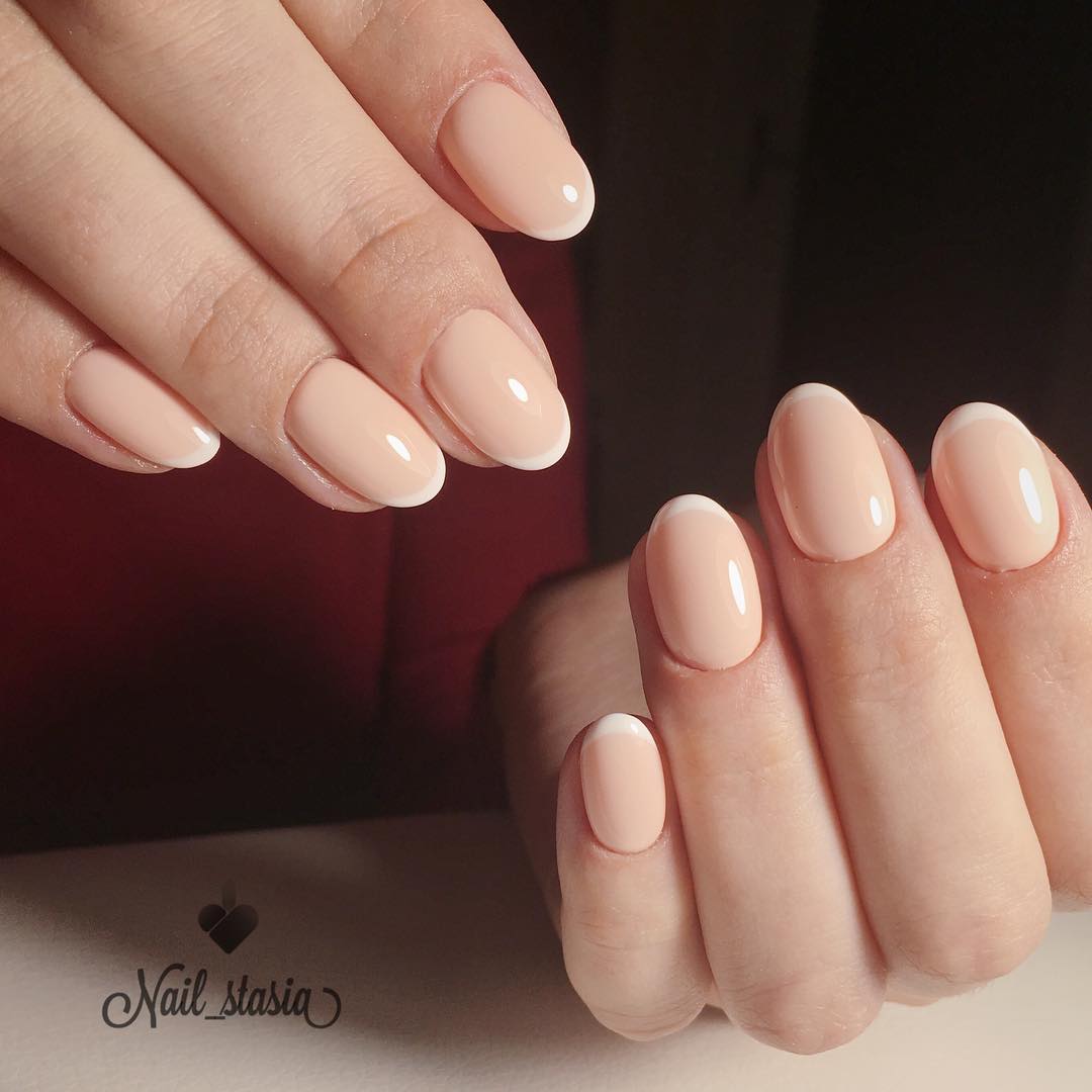 Круглая форма просто создана для коротких ноготков. Она выглядит естественно и женственно даже в самых неожиданных оттенках. Выполняйте круглую форму, если край ногтевой пластины отрос как минимум на 5 мм. Только с такой длиной можно говорить о создании какой-либо формы френча и сопутствующего дизайна.
