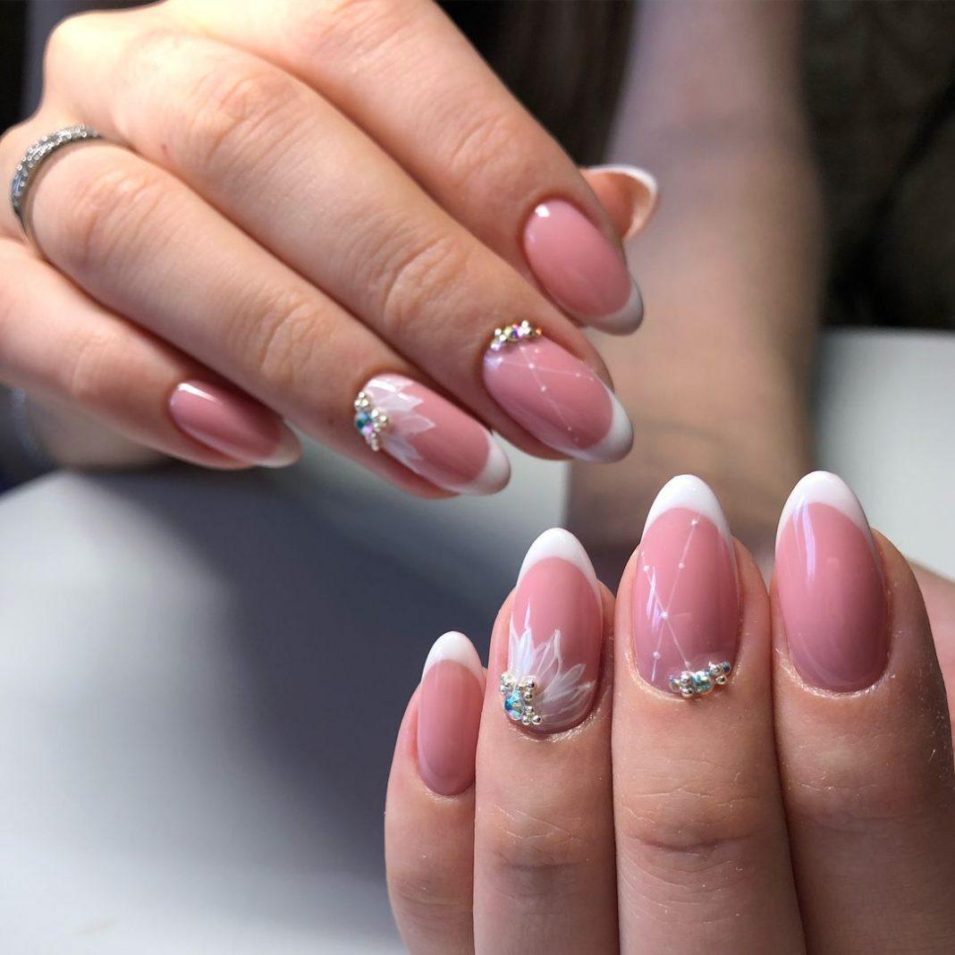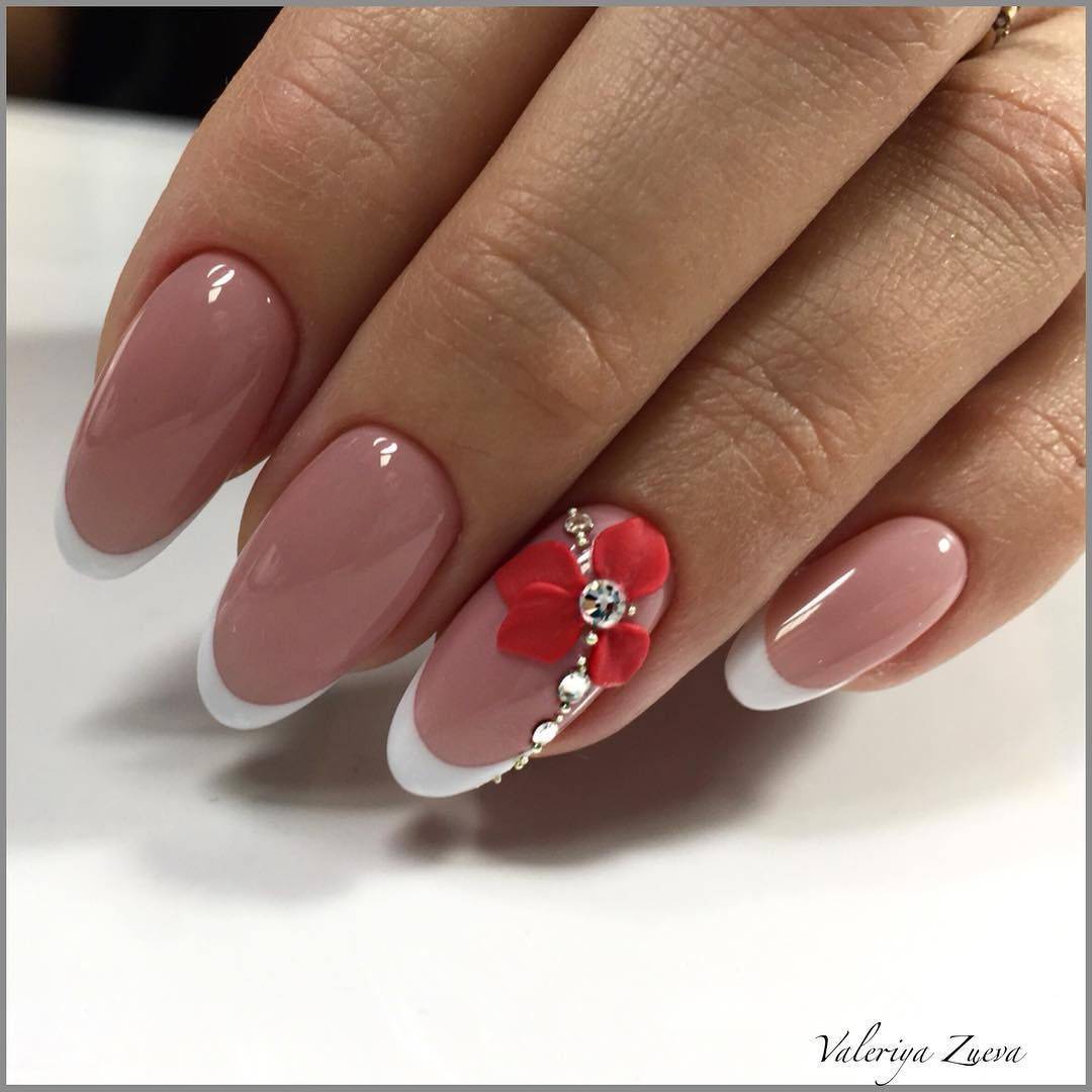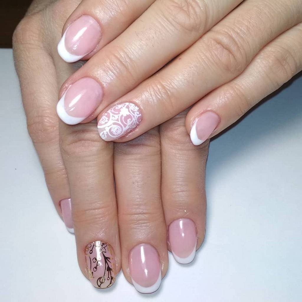 если вы все же решили украсить длинные ногти французским дизайном, то дополняйте его кружевным, геометрическим или цветочным узором