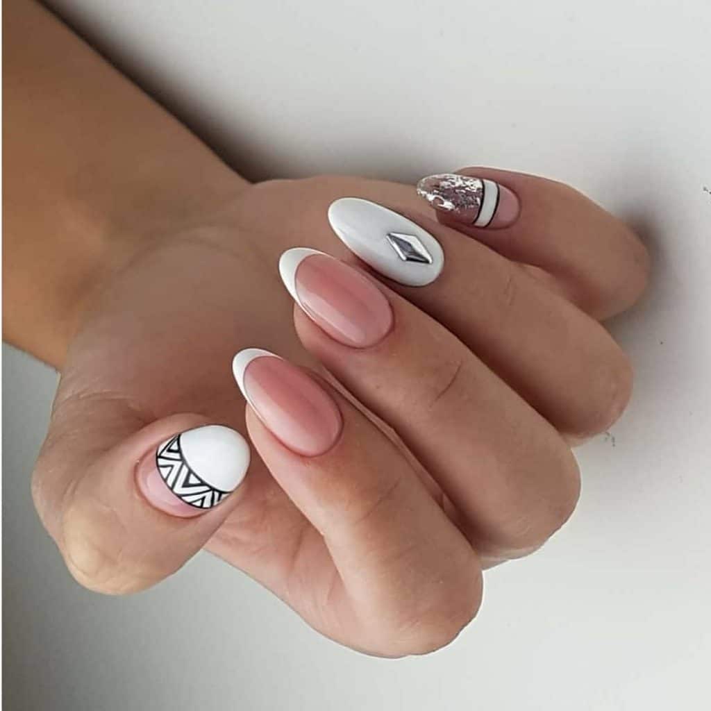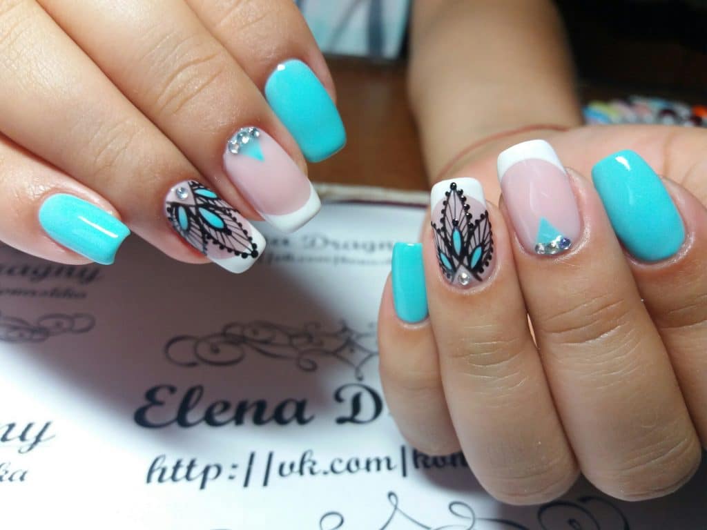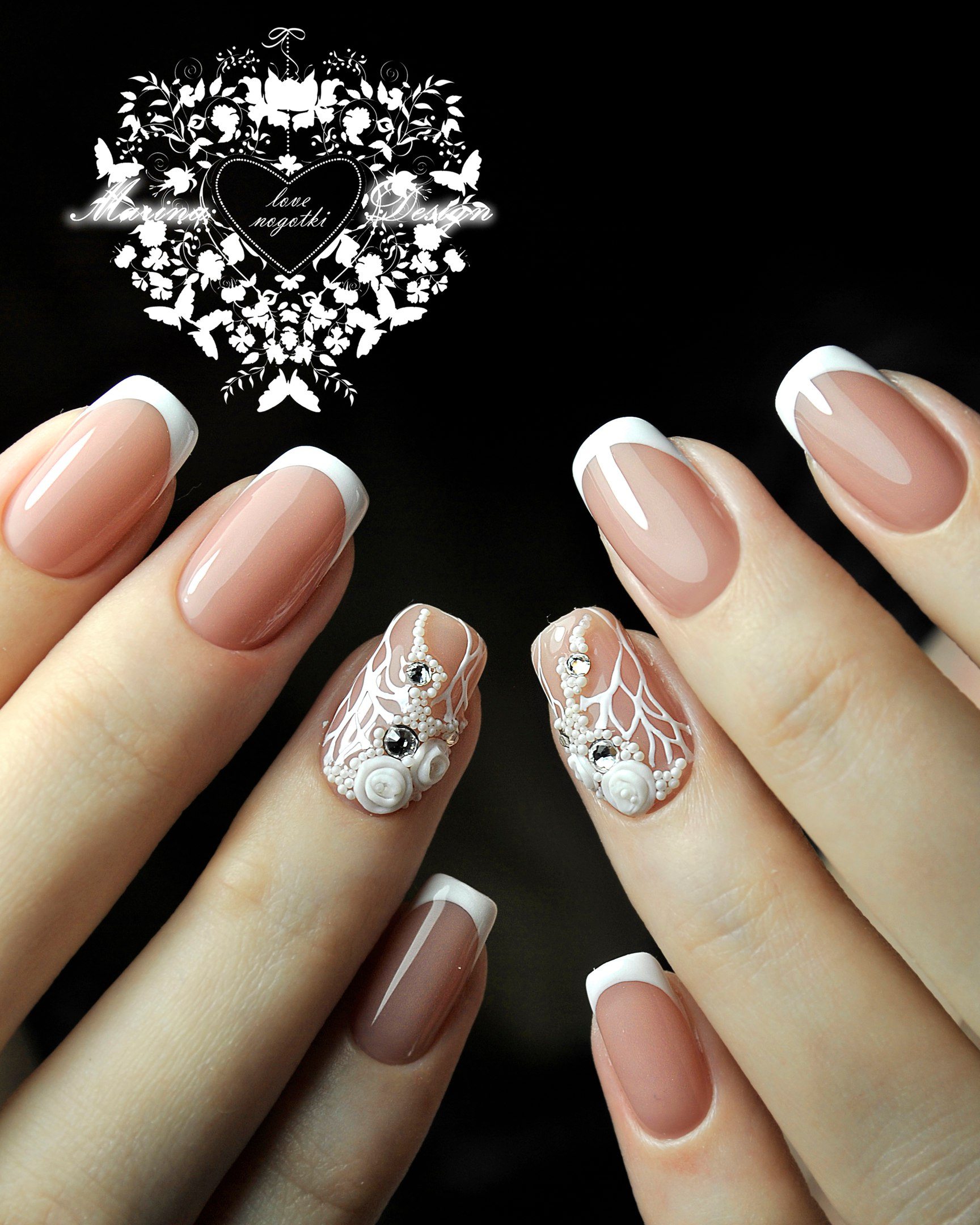 если вы все же решили украсить длинные ногти французским дизайном, то дополняйте его кружевным, геометрическим или цветочным узором