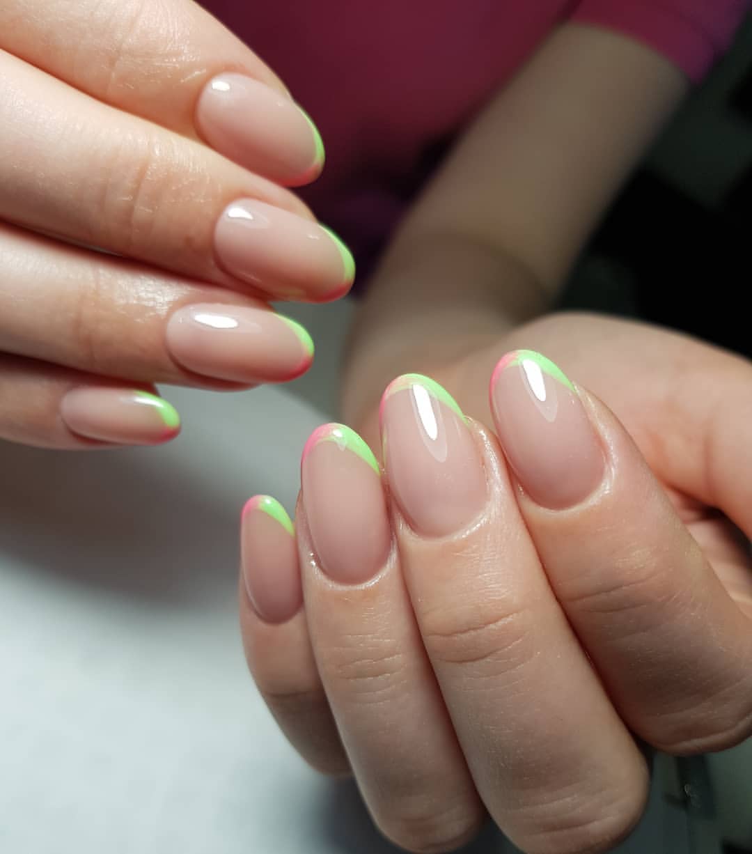 Лето — пора перейти от прохладных цветов ногтей и темного дизайна френча к более ярким цветам. Так что этим летом выбирайте яркие цвета ногтей для французского маникюра. Например, такие как розовый, желтый, оранжевый, голубой, фиолетовый. Неоновые цвета — отличный выбор для сезона лето 2022.