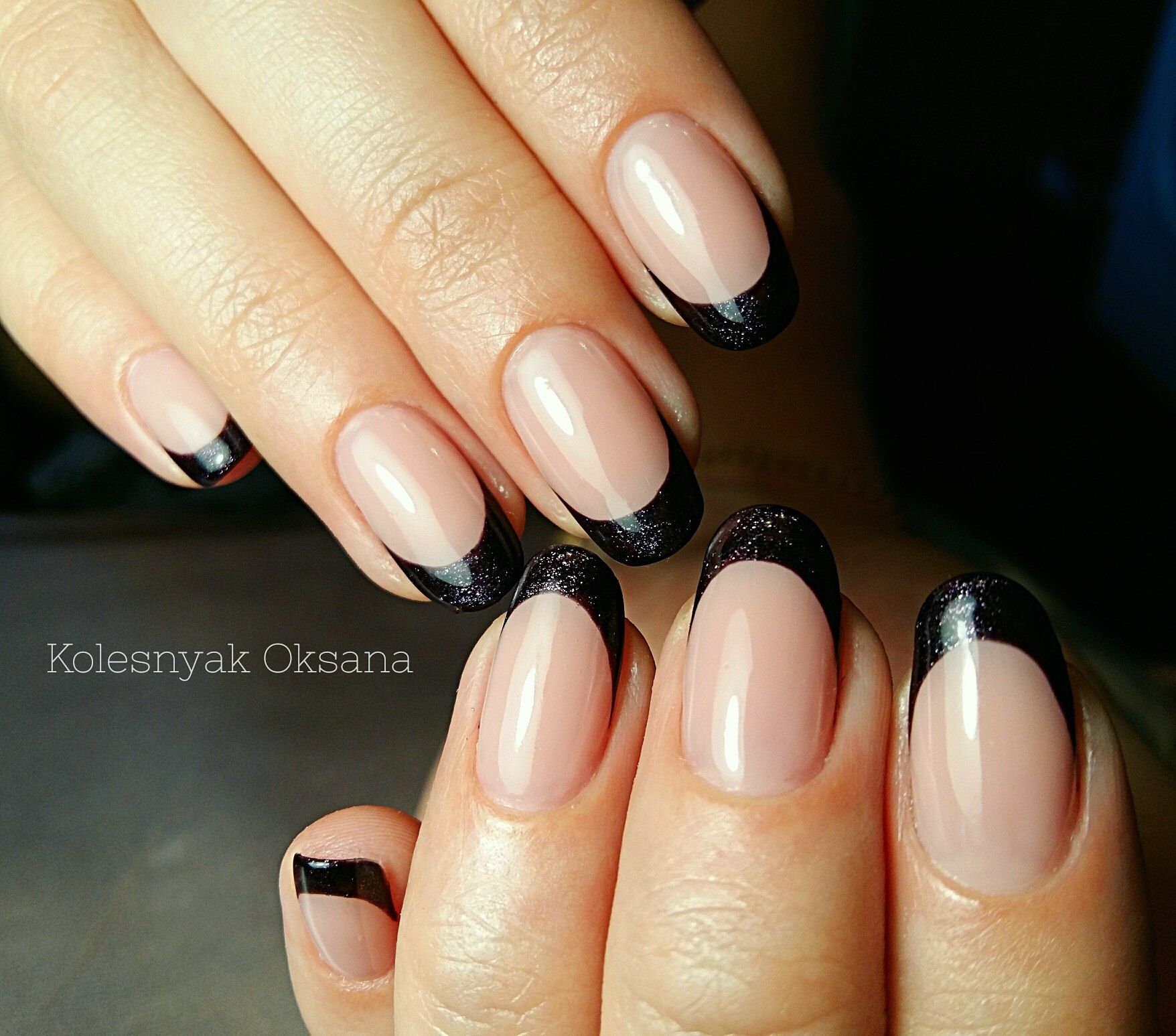 Черный френч на круглых ногтях