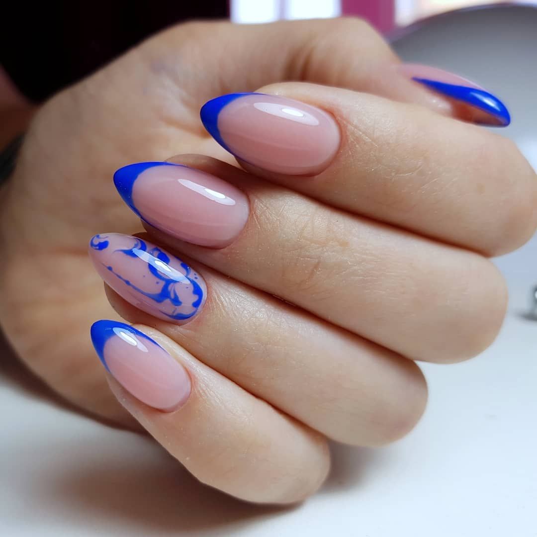 Выбор оттенков для френча также зависит от сезона. В летних образах отлично смотрятся желтый, оранжевый, голубые оттенки. Их можно использовать не только для сплошного покрытия ногтей, но и для декора, например, на морскую тематику.