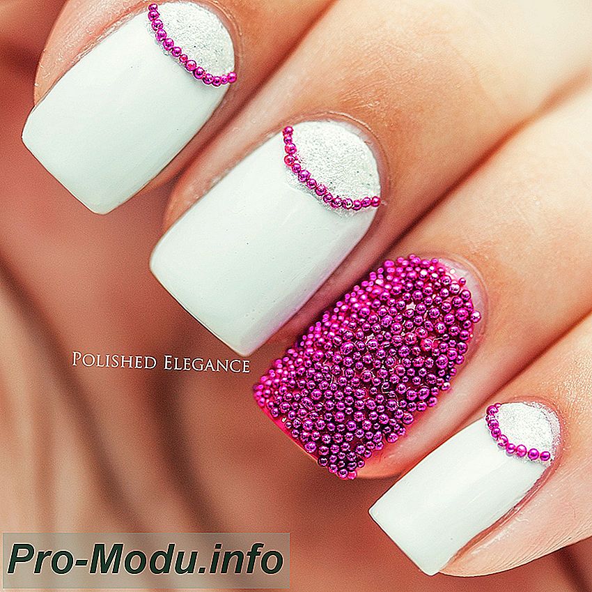 Икорный маникюр можно выполнить на всех пальцах сходу либо акцентировать микробисером отдельные ноготки. В особенности красиво гранулки смотрятся по «соседству» с матовым покрытием.