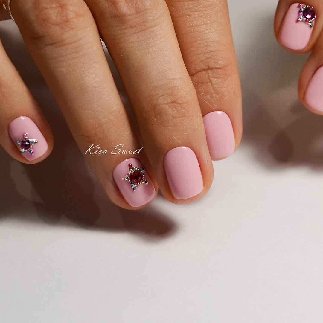 Чтоб без помощи других сделать маникюр со стразами воспользуйтесь готовыми наборами для инкрустации. В качестве основного колера используйте глянцевые лаки.