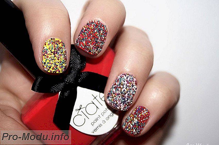 Выполнить без помощи других икорный маникюр сумеет любая женщина. Микрогранулы самых различных цветов доступны во всех маникюрных магазинчиках. Цвета «икринок» подбирайте в тон к выпускному платьицу.