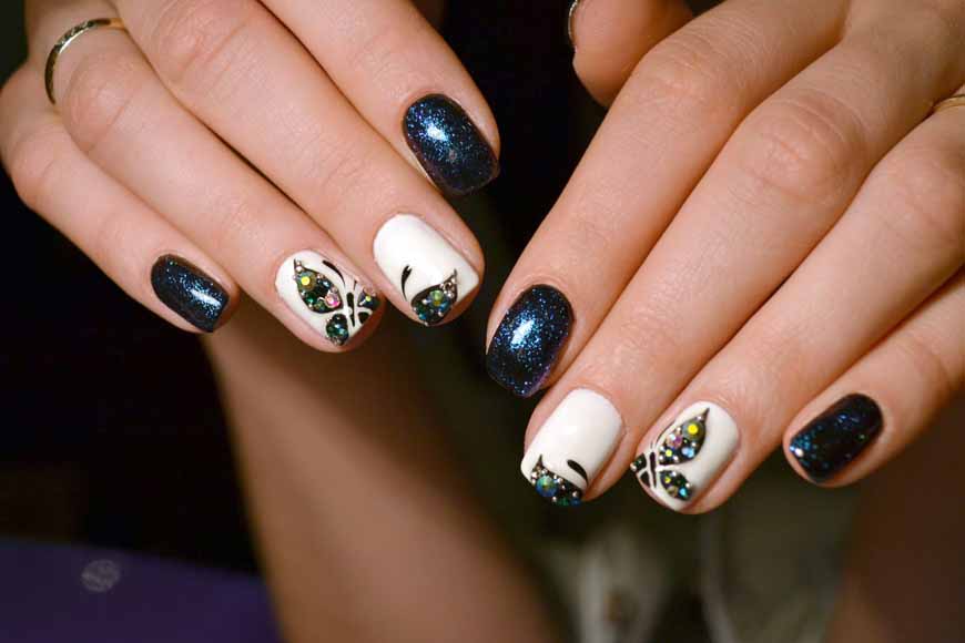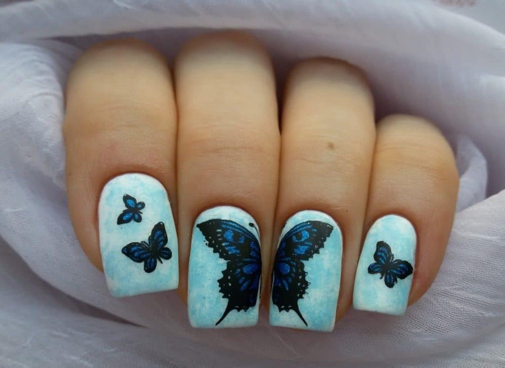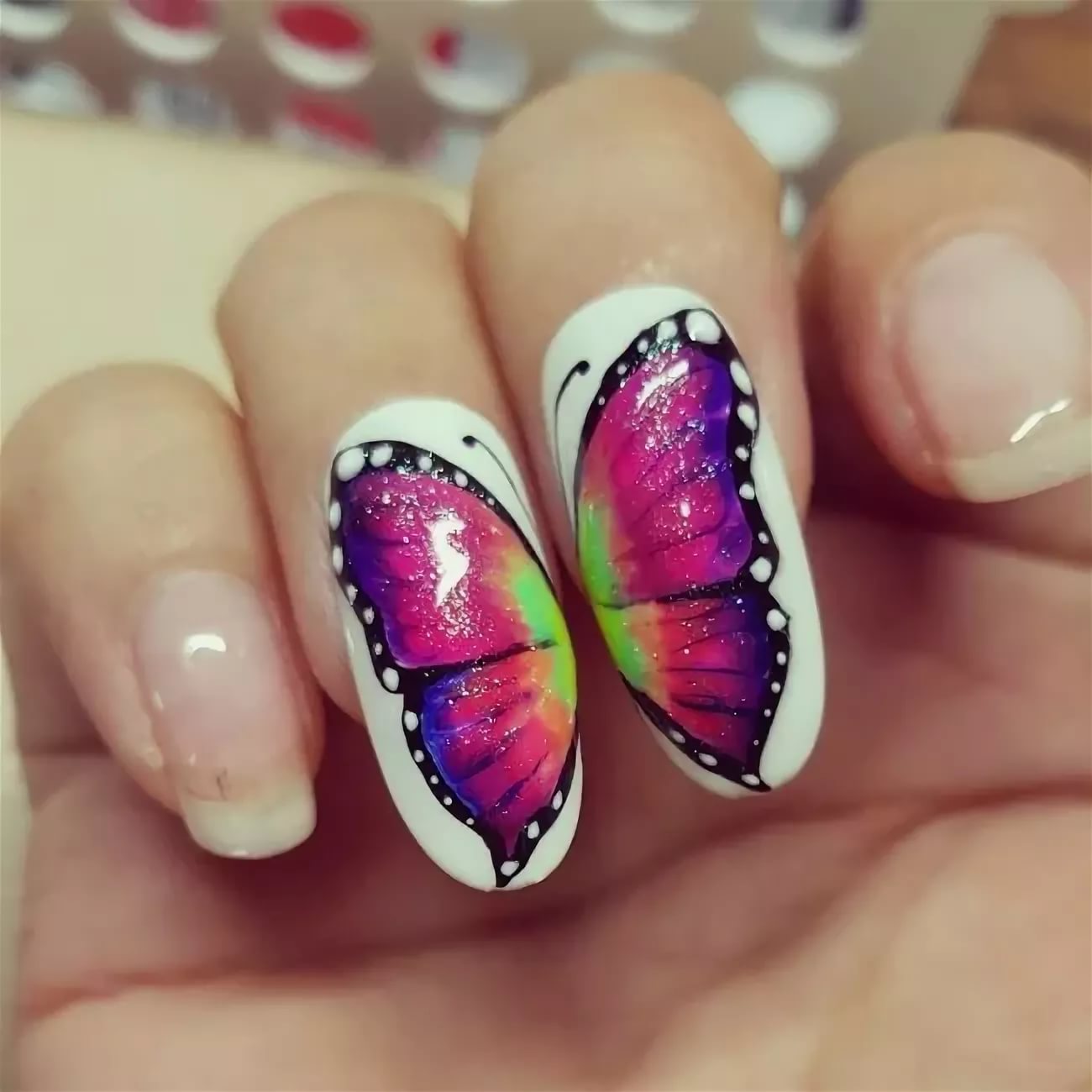 Изображения бабочек подходят для дневного и вечернего маникюра