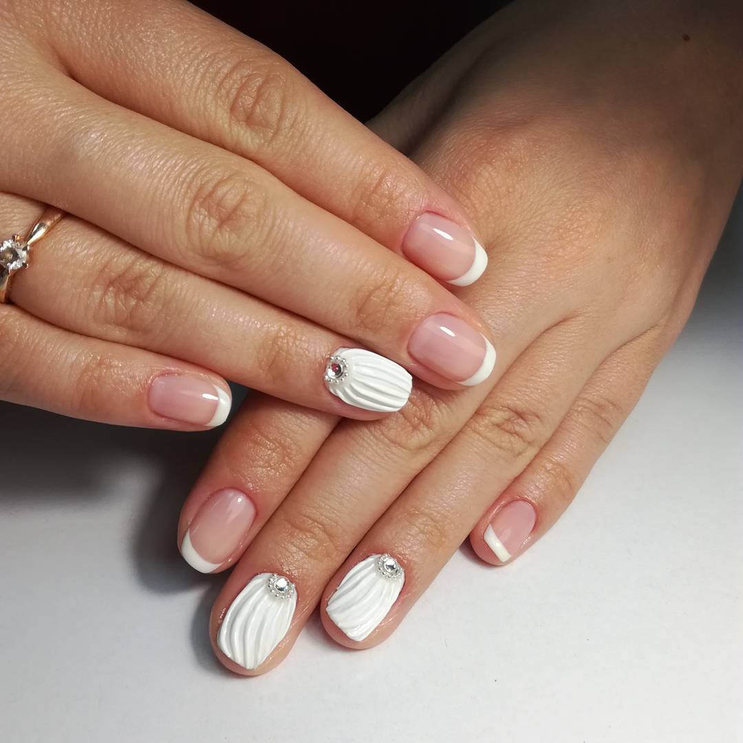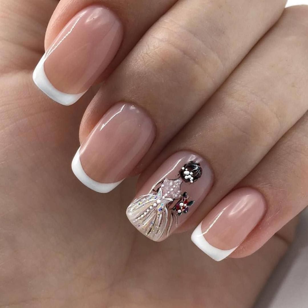 Для свадьбы каждая девушка старается подобрать идеальный вариант маникюра. Конечно же, многое зависит от фасона и цвета платья. Но если вы планируете два наряда, то лучше выбрать универсальный дизайн. Конечно же, речь идет о французском маникюре. Он подчеркнет нежность и романтичность образа. Ведь именно это и нужно каждой невесте.