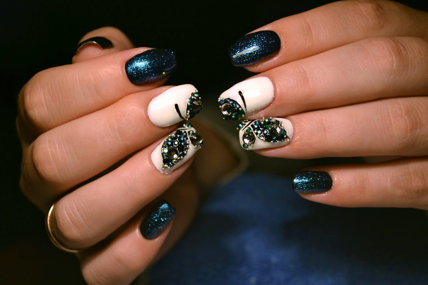 Если вам нужно праздничное оформление ногтей, украсьте крылья насекомого блестками или стразами