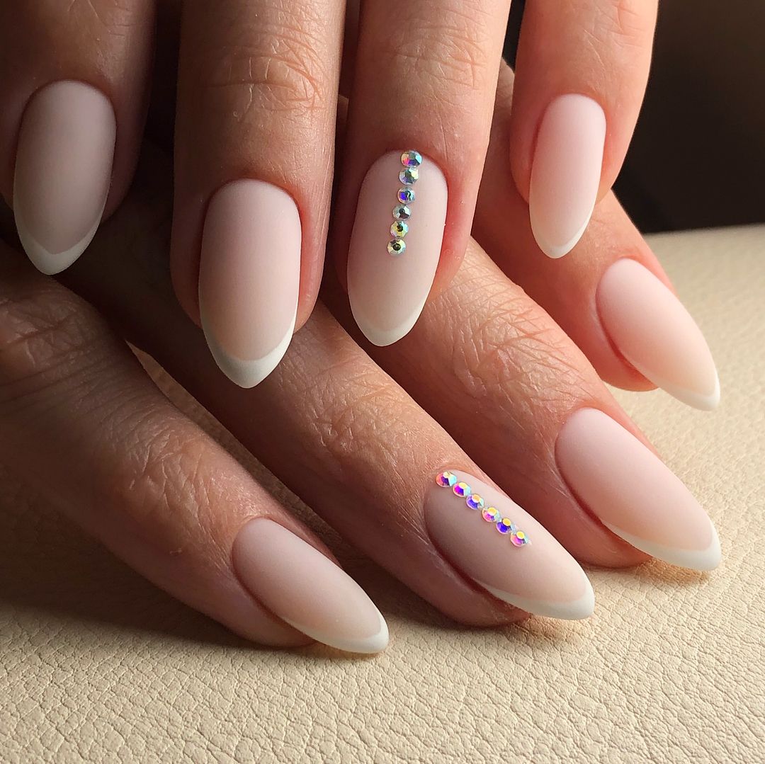 Бесспорный тренд в 2020-2021 году — это конечно форма миндаль. Она покорила всех своей игривостью, кокетством и удивительным сочетанием женственности и смелости. На длинные миндальные ногти нежных цветов, можно смотреть часами, а если добавить акцент в виде страз или геометрии— сутками.