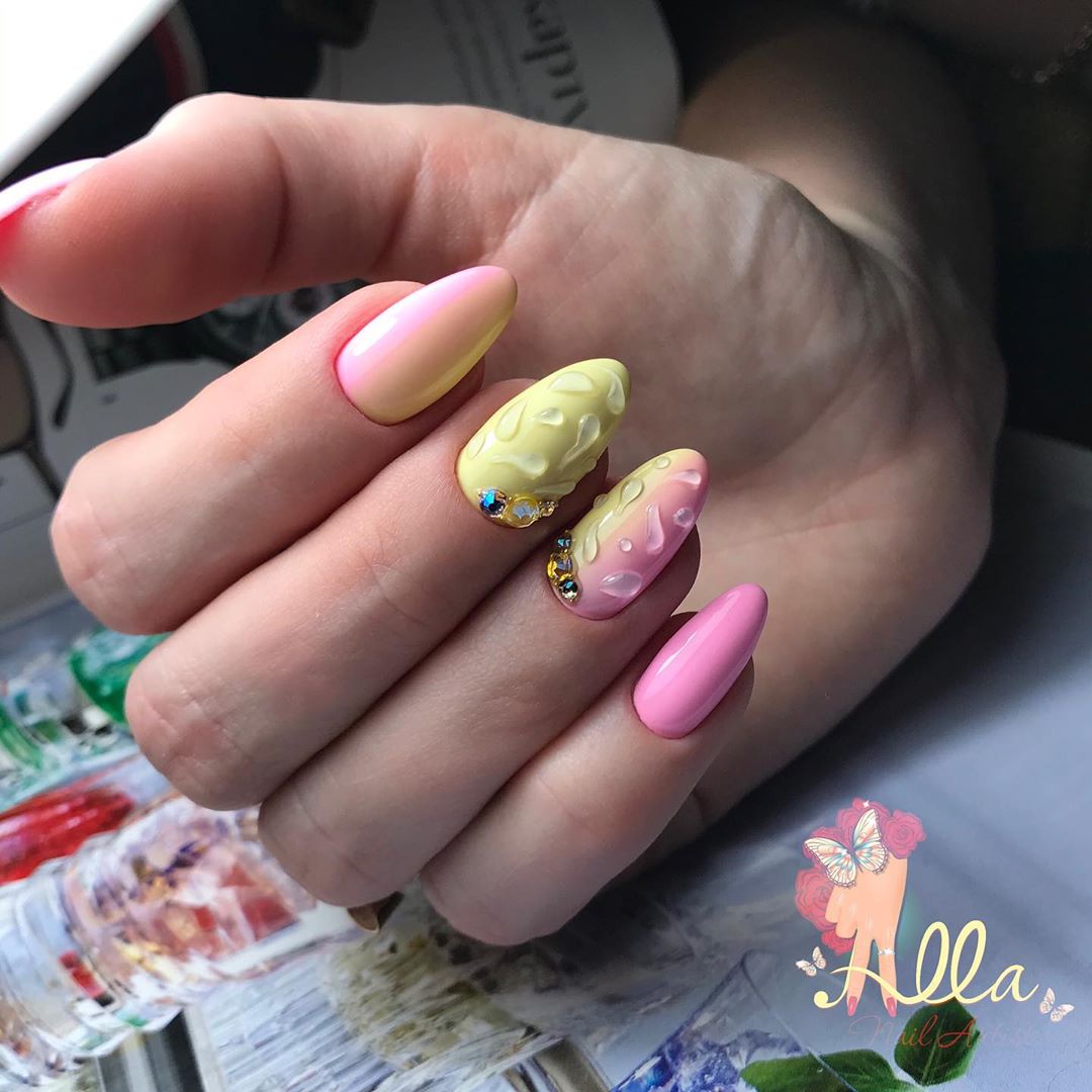 В этом весеннем сезоне мастера придумали много разных дизайнов, необычные цветовые соединения и даже сочетания с другими техниками маникюра.