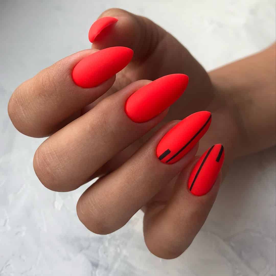 Оранжевый. Данный тон нравится многим за его отличную сочетаемость с темным дизайном, а также с другими яркими лаками. Очень привлекательно смотрятся коралловые и тыквенные оттенки.