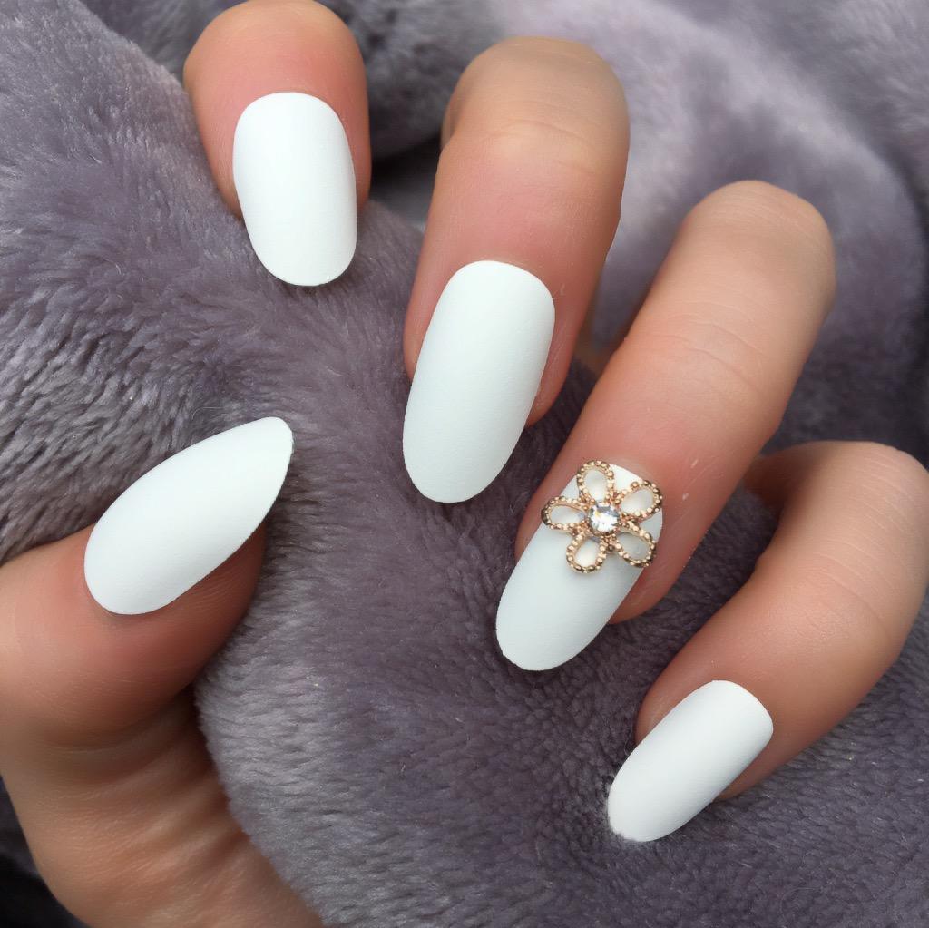 Как было сказано выше, одним из наиболее популярных в новом сезоне является матовый маникюр. Он всегда выглядит необычно и оригинально. Единственным недостатком можно считать тот факт, что матовое покрытие подчеркивает каждую неровность на поверхности ногтевой пластины. Поэтому ногти нужно тщательно подготовить, а классический овал станет оптимальной формой.