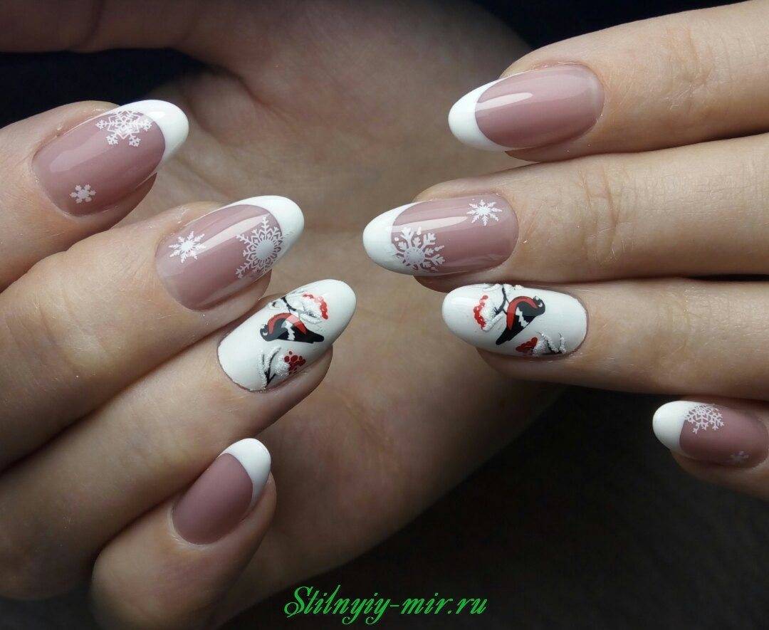 Как известно, с классической формой лучше всего сочетается классическое содержание. Очень уместно будет смотреться белый френч на овальной форме с красиво изогнутыми линиями. Вне зависимости от длины ноготок будет смотреться идеально. Поскольку на выступающий краешек будет нанесён белый тон, для такого маникюра по ширине ноготь может быть любой.