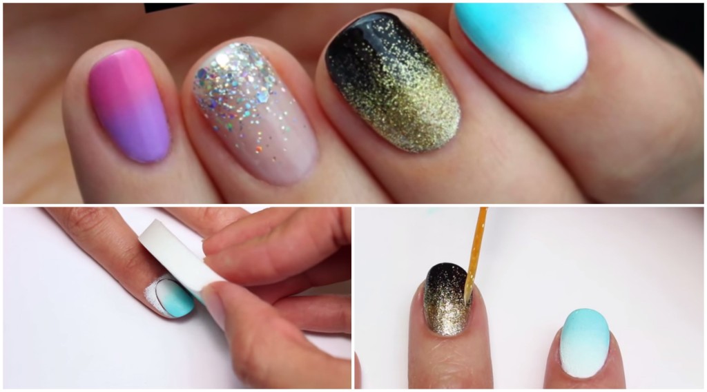 Используя разные способы, создают градиент на натуральных и искусственных коротких ногтях. Можно и гель-лак применять, и разные материалы использовать.