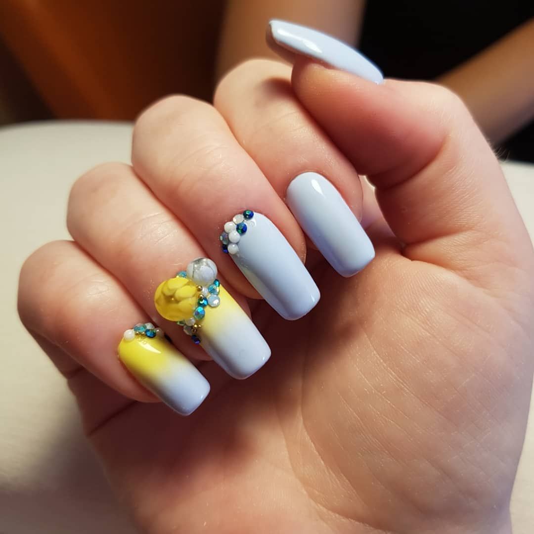 6. Дизайн с наклейками, бульонками и стразами. Применяется в праздничных случаях (свадьба, выпускной) и требует красивого платья.