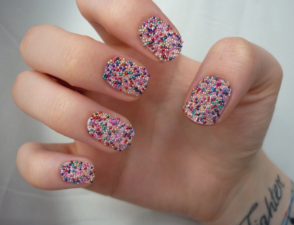 Если же вы собрались на вечеринку, то почему бы не усыпать шариками все ногти? Это непременно привлечет к вам внимание окружающих. Можно комбинировать бульонки разных цветов в зависимости от времени года