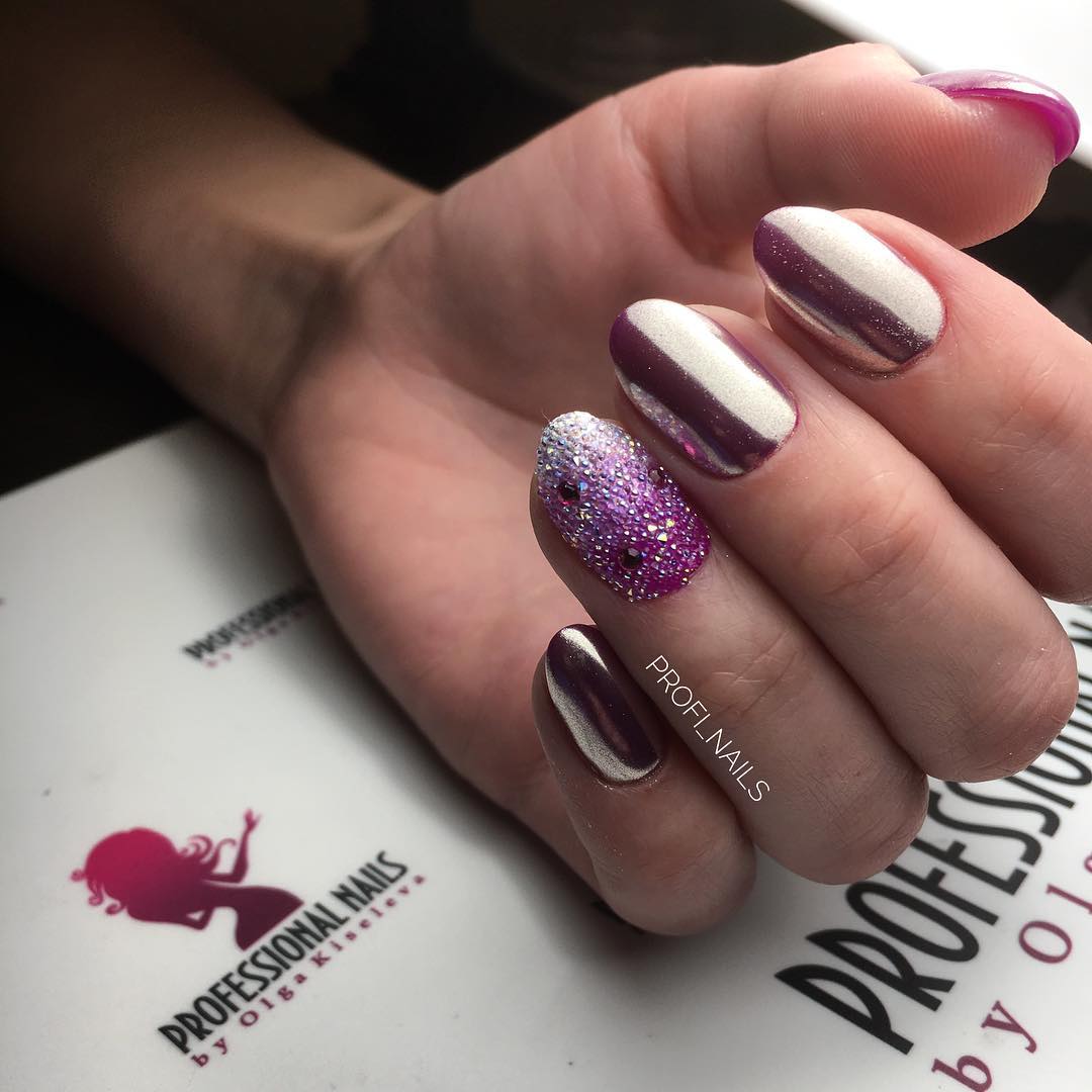 Бульонки в нежном фиолетовом маникюреBullion в переводе с французского языка означает бисер. В отличие от этих мелких бусинок бульонки – это маленькие стеклянные шарики.