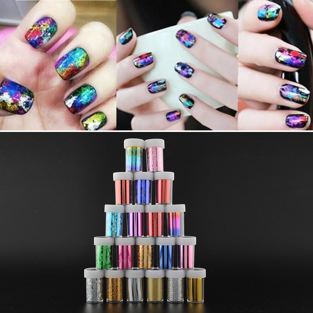 - Переводная. Самый востребованный вид фольги для ногтей. Зачастую она продается свернутой и расфасованной по баночкам. Металлическое напыление нанесено на поверхность тоненькой пленки. Ее прикладывают к ногтевой пластине с нанесенным липким покрытием и через несколько секунд убирают. Напыление остается на ногте, а пленка становится прозрачной. Что главное, дизайн получается красивый и аккуратный.