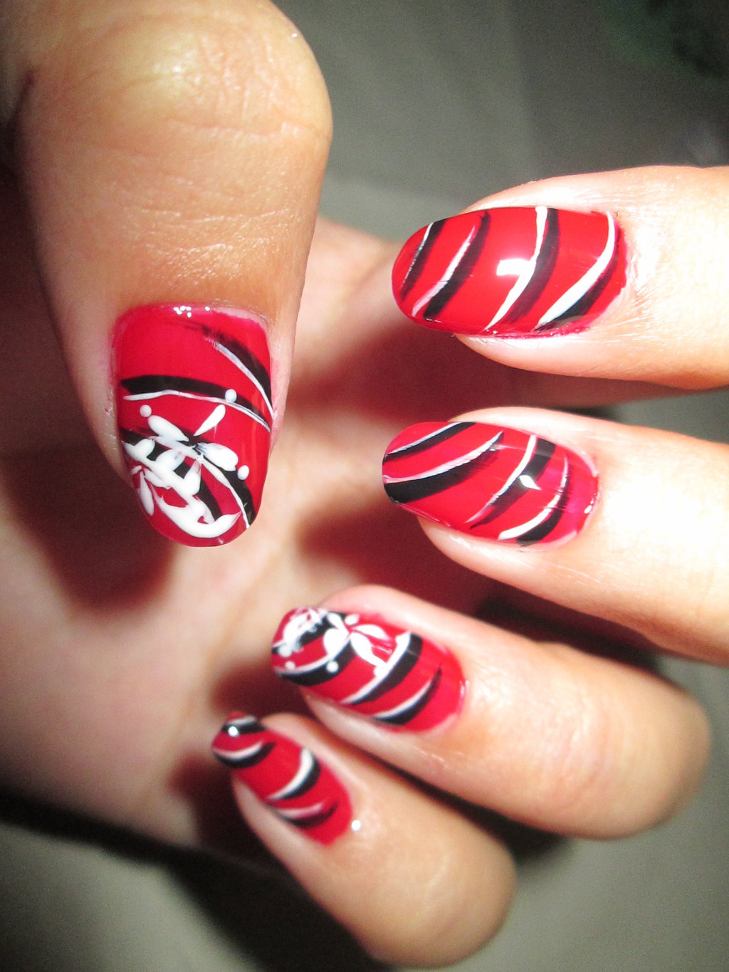 Важная роль при выборе маникюра отводится стилю одежды. Переизбыток красного в образе сделает его вульгарным. Если наряд имеет насыщенную палитру цвета страсти, то уместным будет французский маникюр. На короткой ногтевой пластине кайма прорисовывается тонкой линией, в противном случае ногти примут неэстетичный вид. Красный дизайн ногтей подходит для вечернего и торжественного события, где важен макияж. Помада должна строго соответствовать оттенку лака.