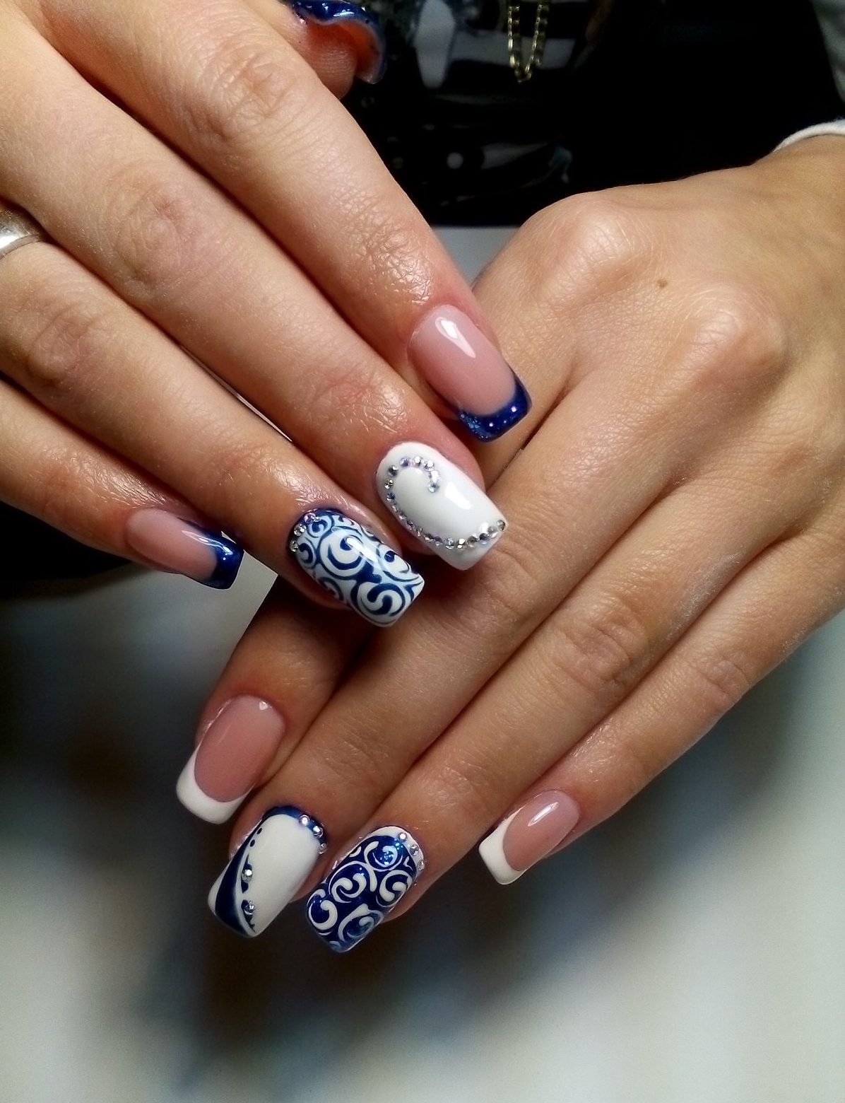 Помимо ярких оттенков в турецком маникюре преобладают серебряные и золотые тона. Узоры стемпингом шикарно смотрятся на синем или белом фоне. Стоит учитывать, что турецкие мотивы выглядят на ногтях достаточно объемно, поэтому варьируйте размер рисунка в зависимости от длины и ширины ногтевой пластины.