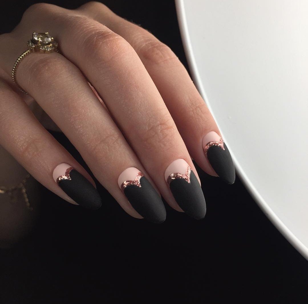 матовое покрытие эффектно сочетается с глянцевым акцентом: капельки, френч, вензеля.