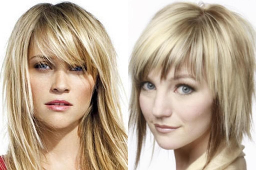 Варианты рваных косых длинных челок на коротких и длинных волосах