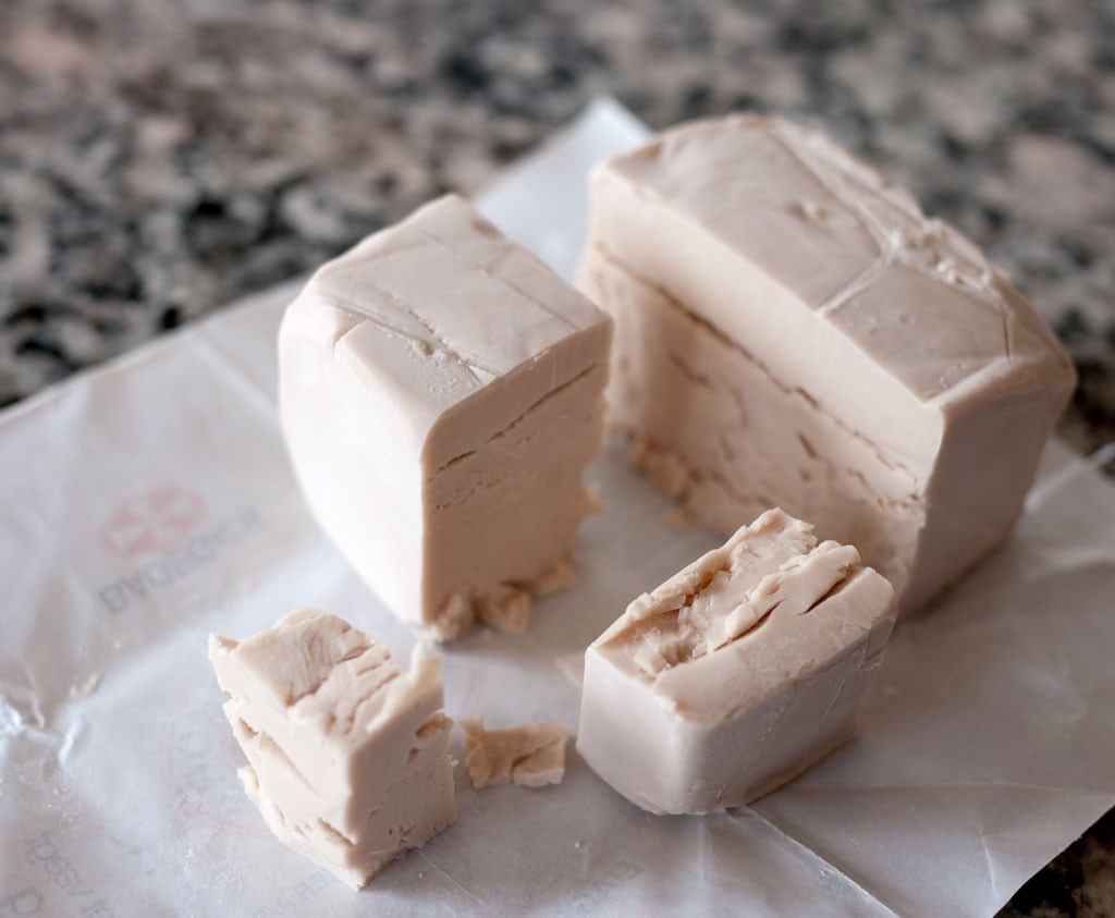 - Четверть пачки прессованных дрожжей разотрите с двумя ложками меда