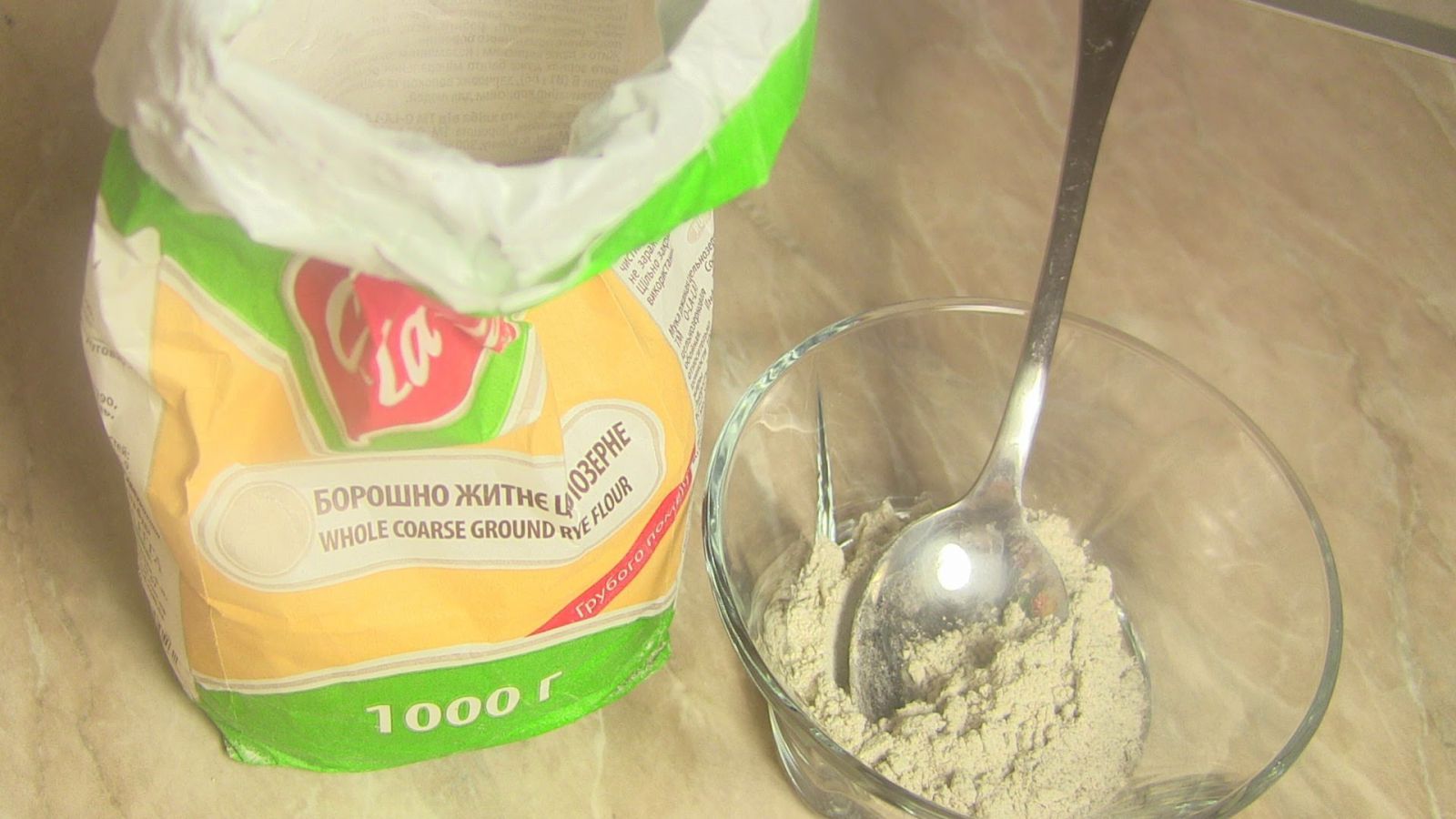 - 3 ст.л. муки заливают теплой водой или отваром трав (подбирается в зависимости от типа и цвета волос)