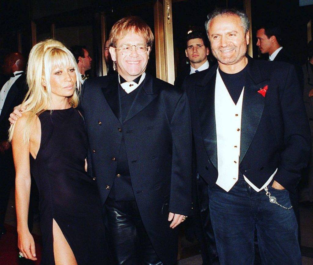Донателла Версаче, певец Элтон Джон и Джанни Версаче, 1995