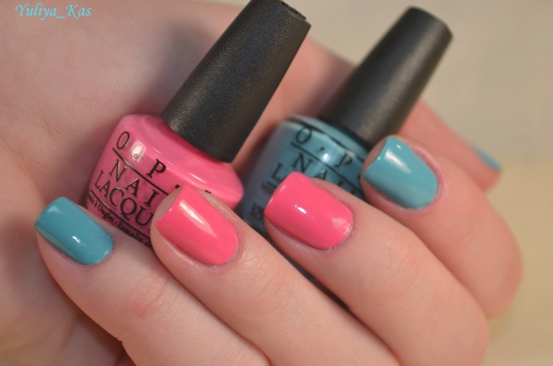- Используйте не только пастельные тона, но и лаки ярких цветов, в том числе кислотные цвета. В качестве летнего варианта подойдет сочетание оранжевого и салатового, ярко-желтого и белого, голубого и розового.