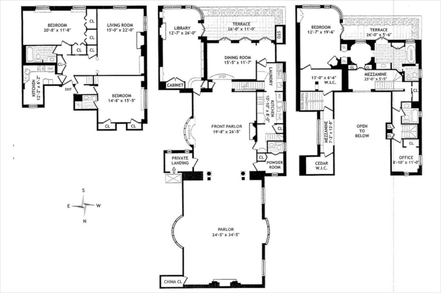 С террасы открывается панорама на Манхэттен. Над данной террасой располагается ещё одна такая же (см. план), которая выходит на балкон бального зала.