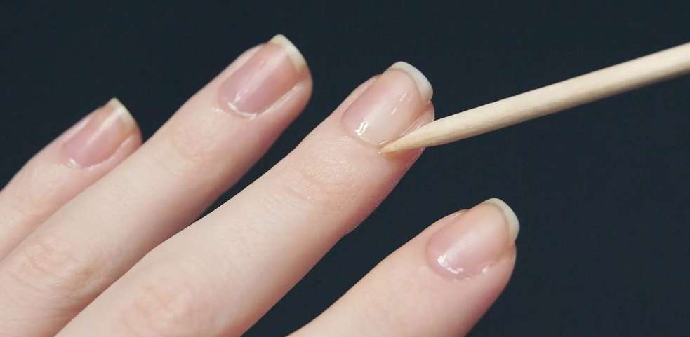 Шаг 4: Убрать размягченную тонкую кожицу с поверхности ногтя;