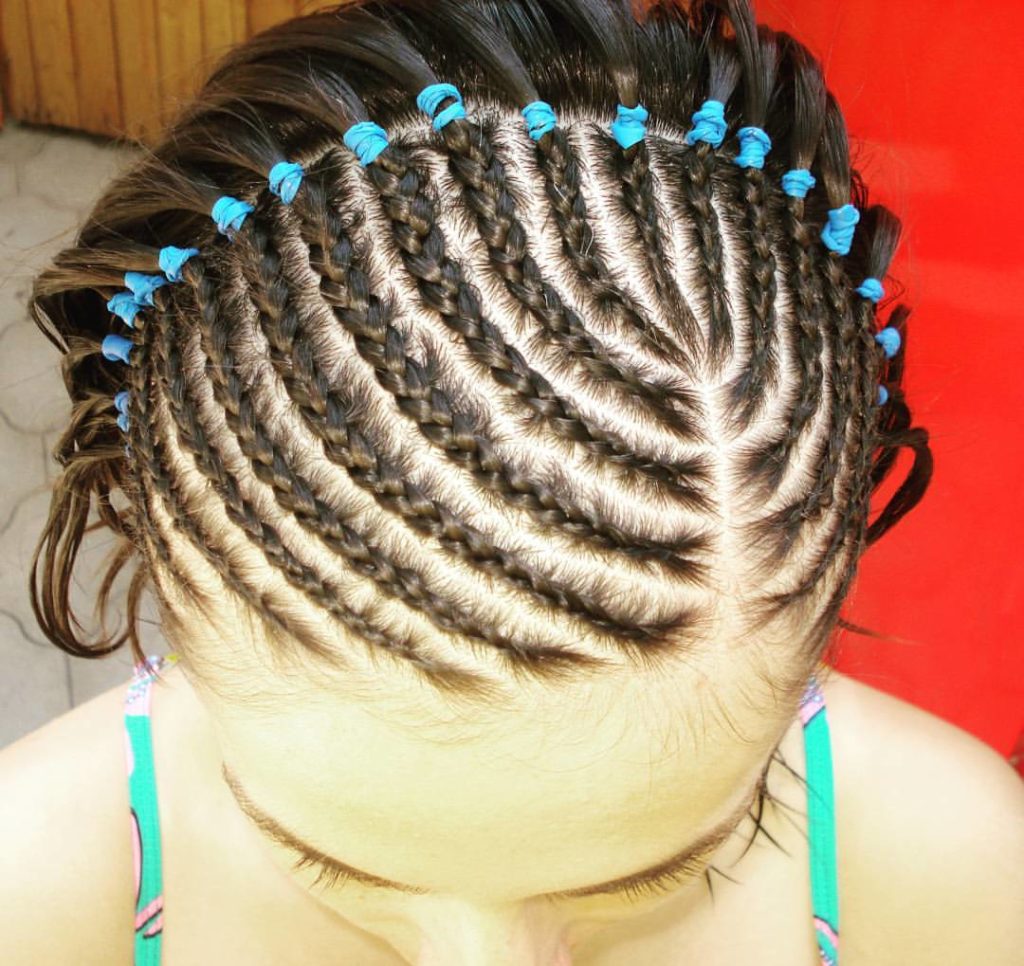 Отличной идеей будет, завязав пучки резинкой, наплести много тонких афрокосичек. Тут можно долго экспериментировать.