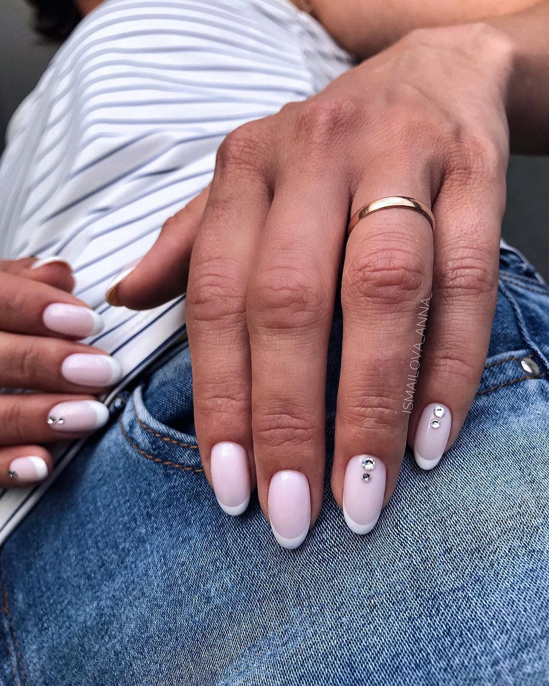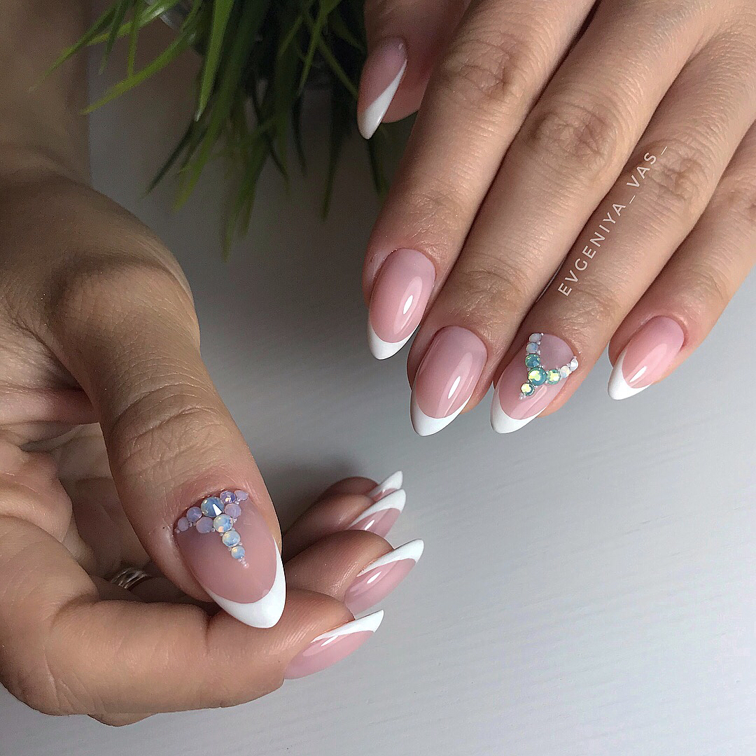 Элегантный французский маникюр с камнями: фото 2022