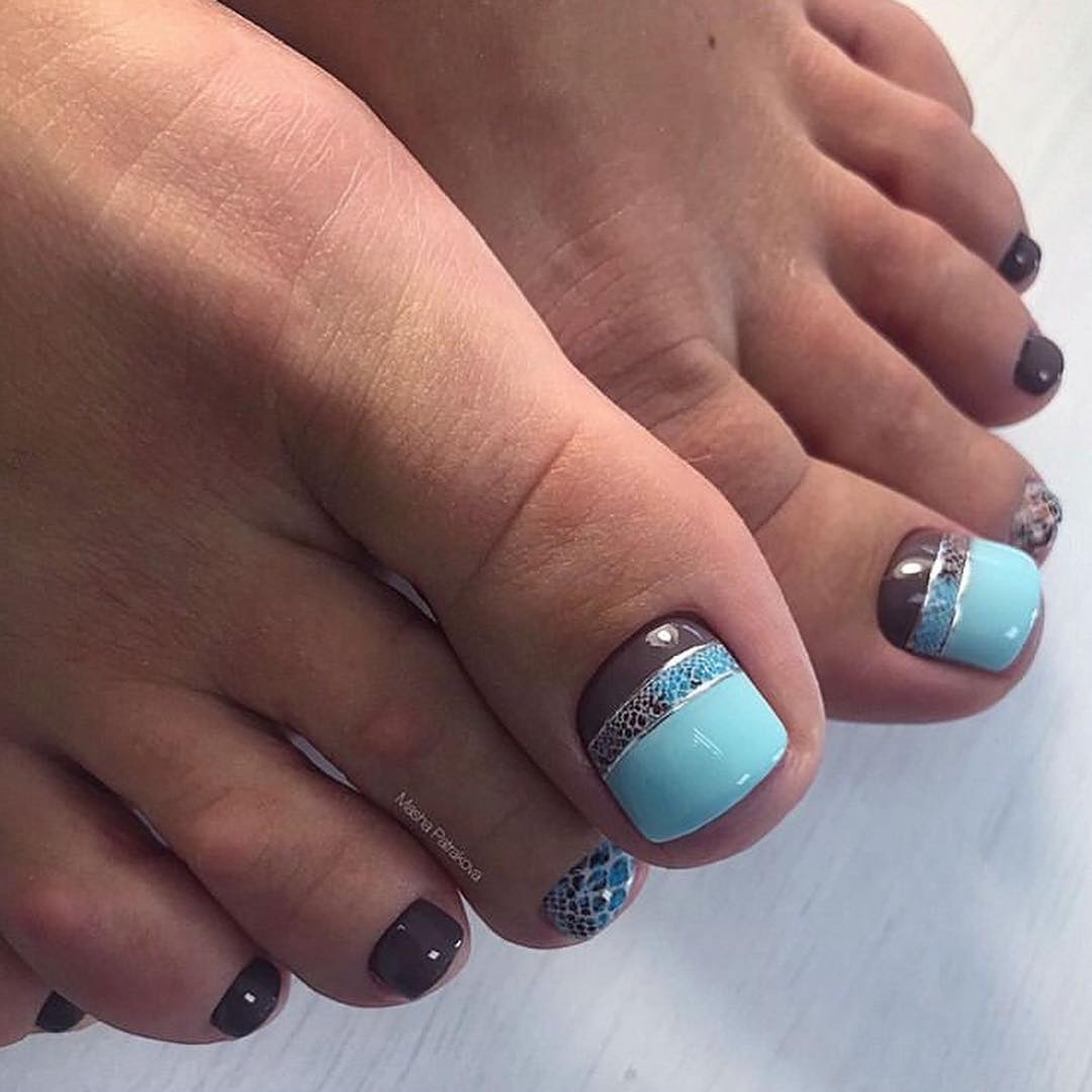 Педикюр 2020, модные тенденции, фото в морской тематике наиболее гармонично выглядят на отдыхе. Также данный дизайн подойдет для тематической вечеринки.
