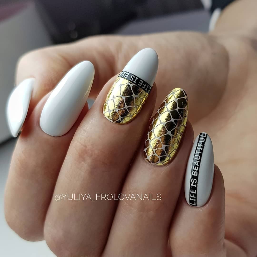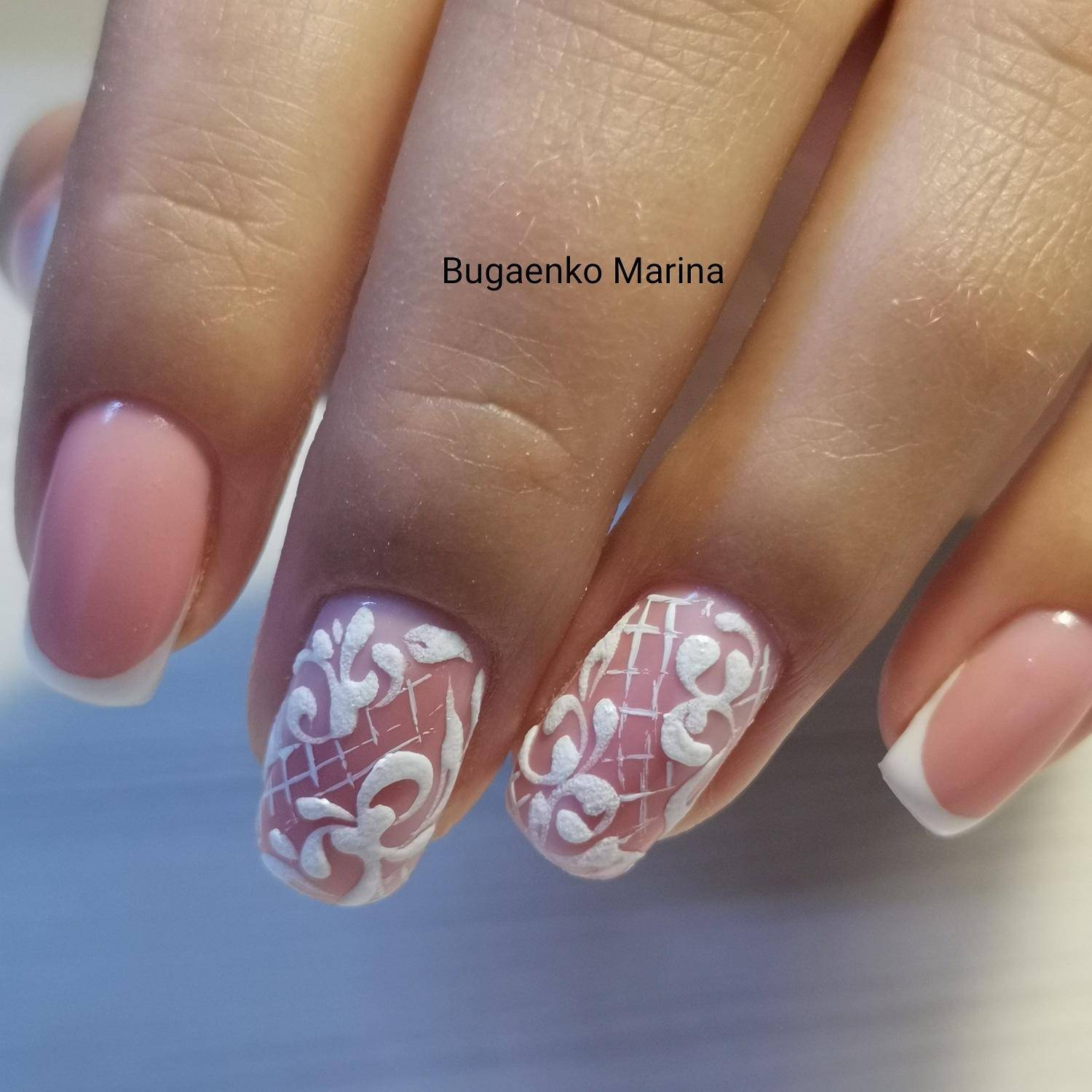 Такие ногти делают невестам на самый важный день в их жизни. С этим дизайном ногтевая пластина обретает красивый внешний вид, который красиво подходит к роскошному наряду.