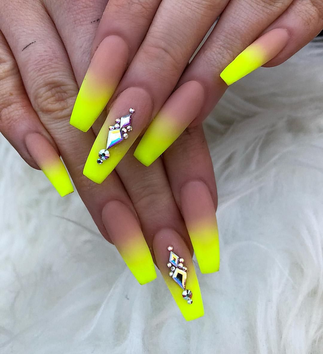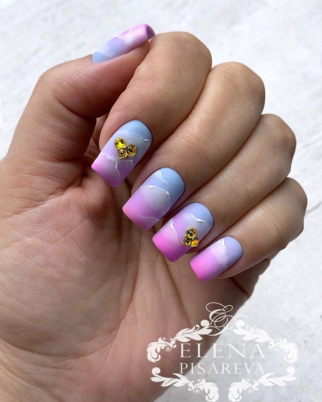 Такой метод менее сложный, нежели нанесение рисунка кисточкой. Если делать градиент на короткий ноготь, то лучше расположить все линии диагонально, для того чтобы визуально ноготь казался длиннее.