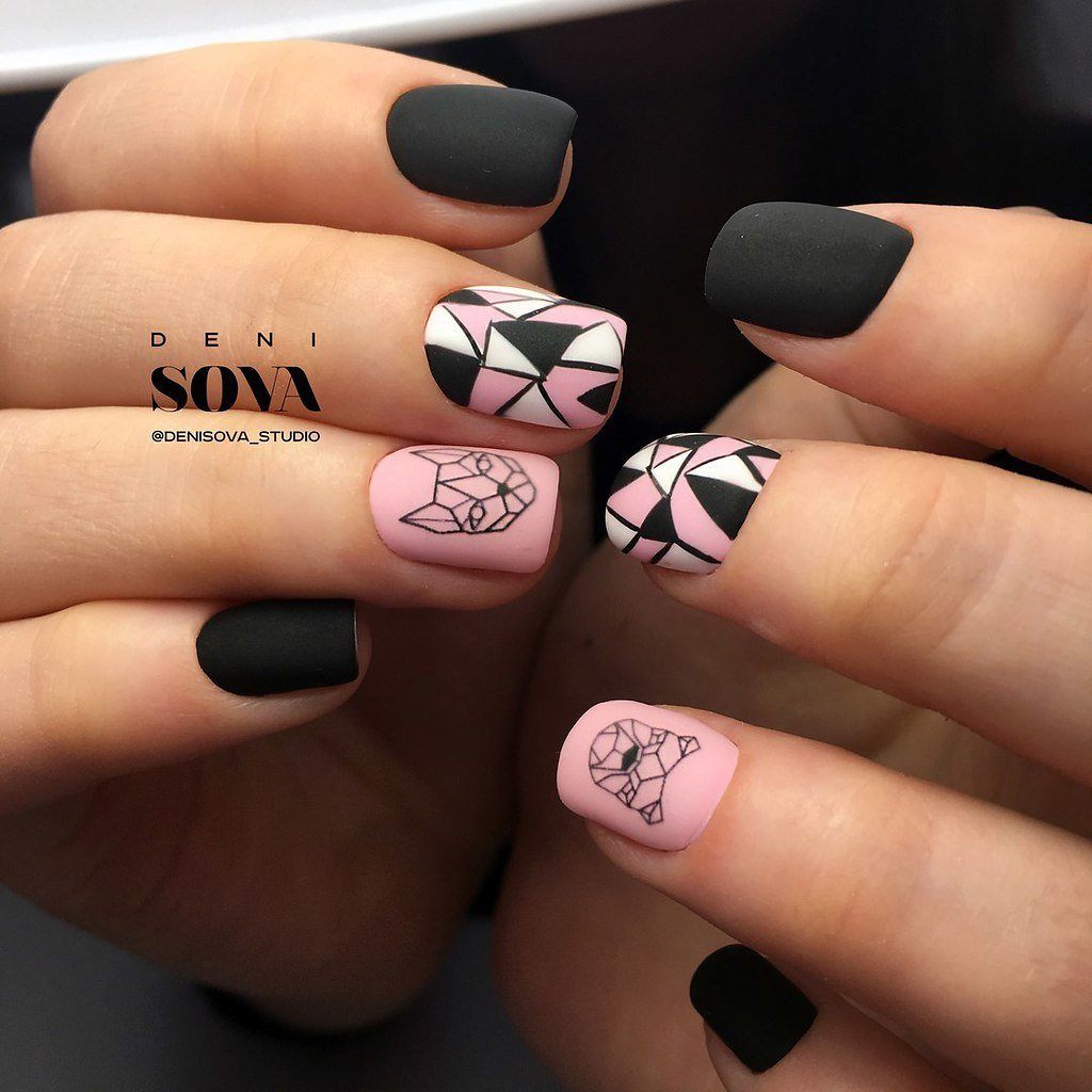 Такой маникюр дает широкое поле для фантазии: можно использовать буквально все геометрические фигуры, которые вы знаете