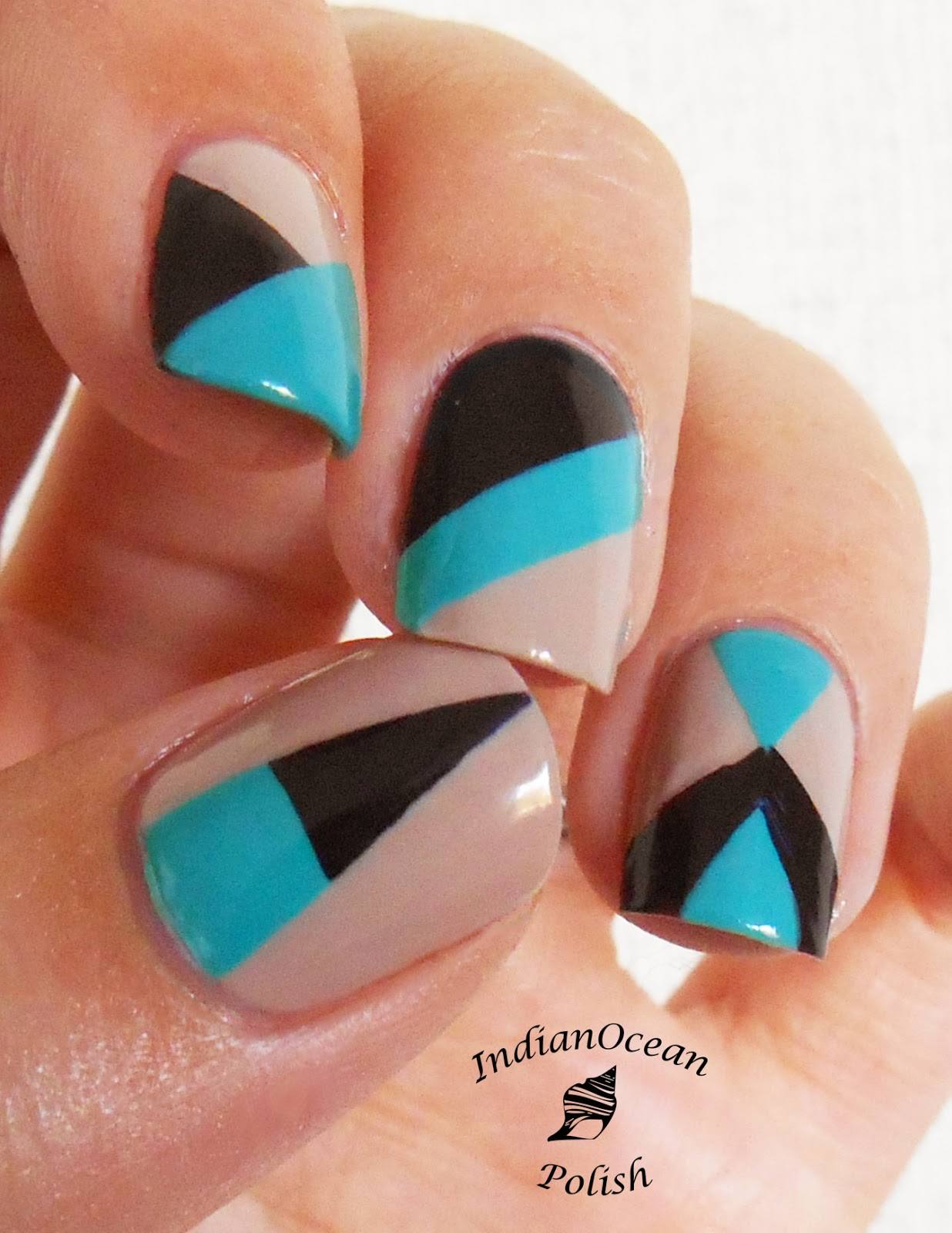 Сочетание трех цветов лака в геометрическом маникюре дает очень эффектный результат