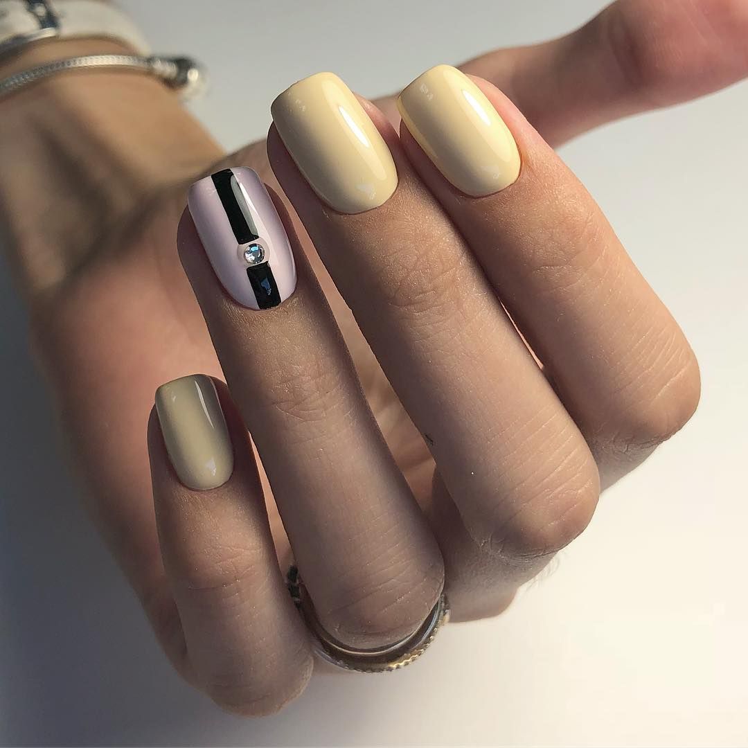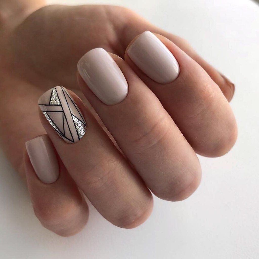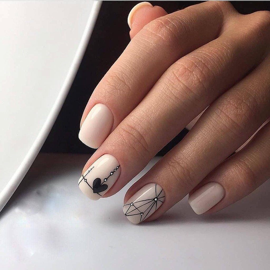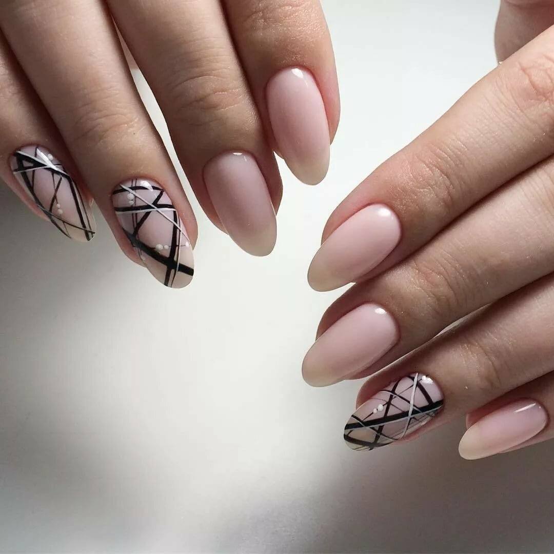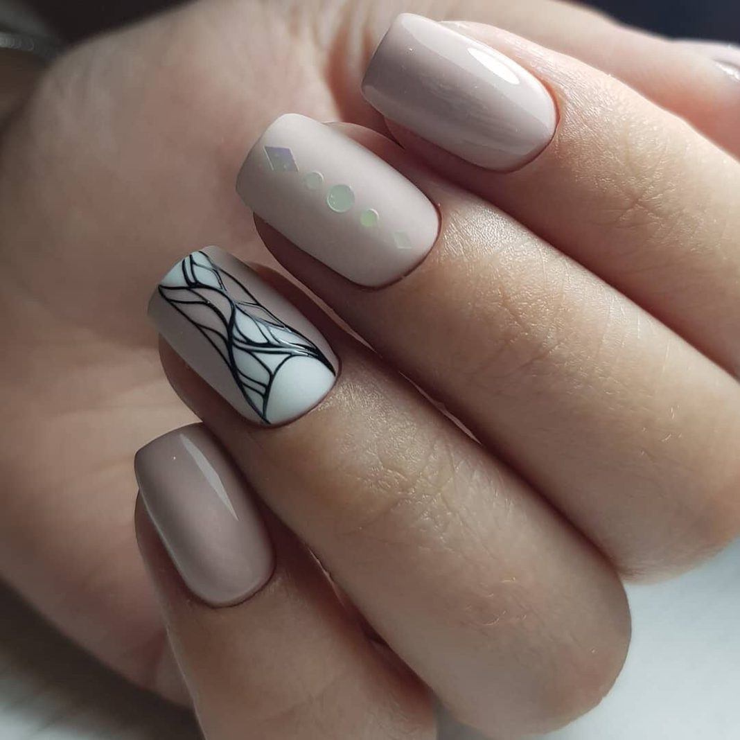 Очень стильные и простые рисунки на ногтях на бежевой основе