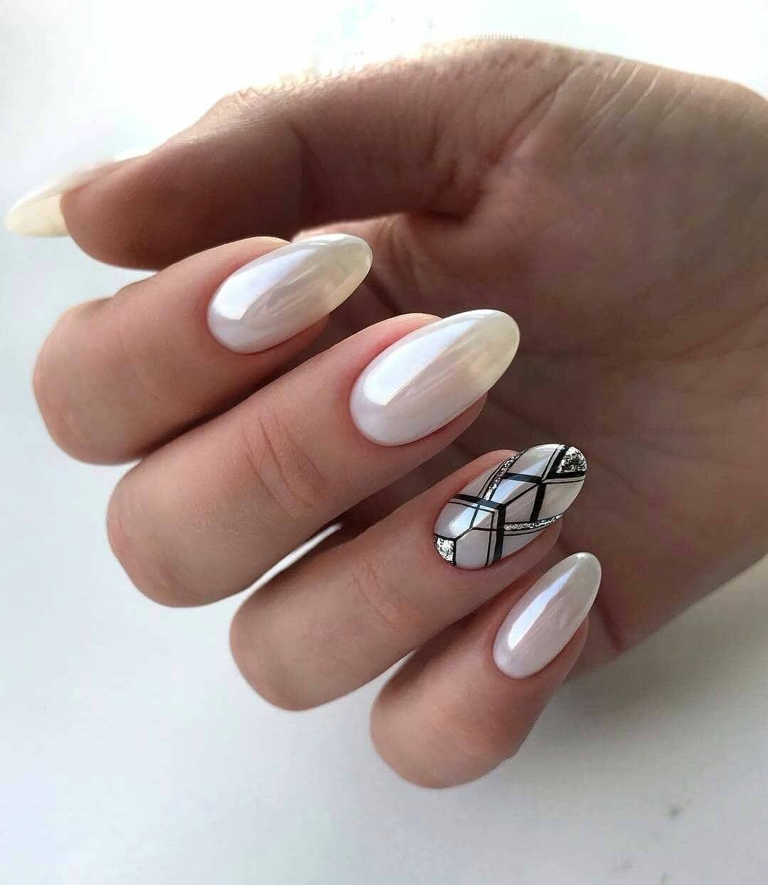 Легкий и нежный дизайн ногтей с геометрическими узорами