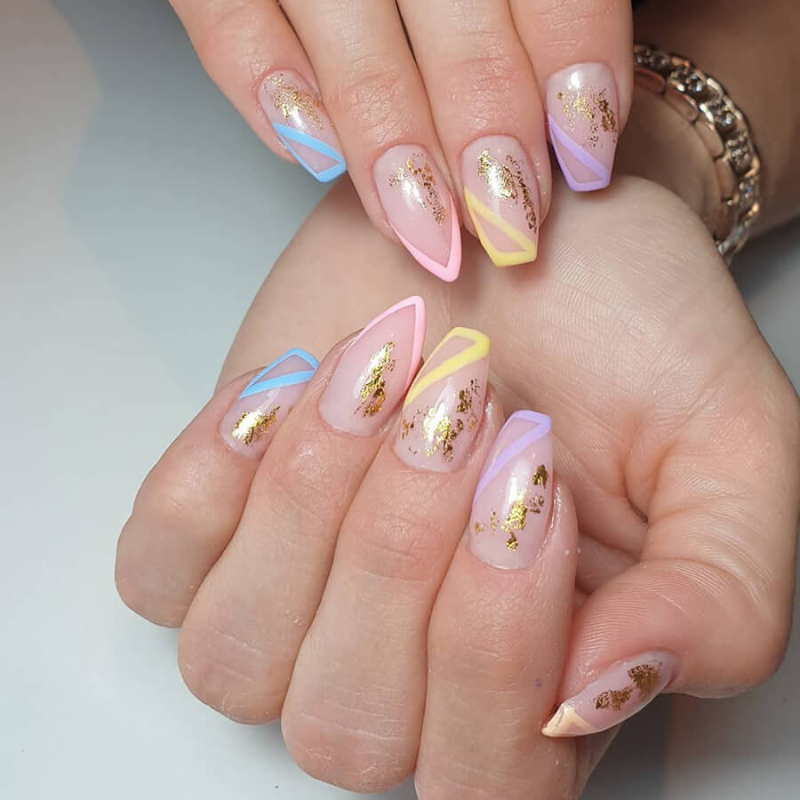 В частности, это персиковые, бежевые, голубые и другие более яркие и сочные оттенки. В маникюре геометрия стоит попробовать использовать разные подходы к нанесению рисунка. Вы можете сделать более классический вариант, а можно наоборот что-то яркое и броское.