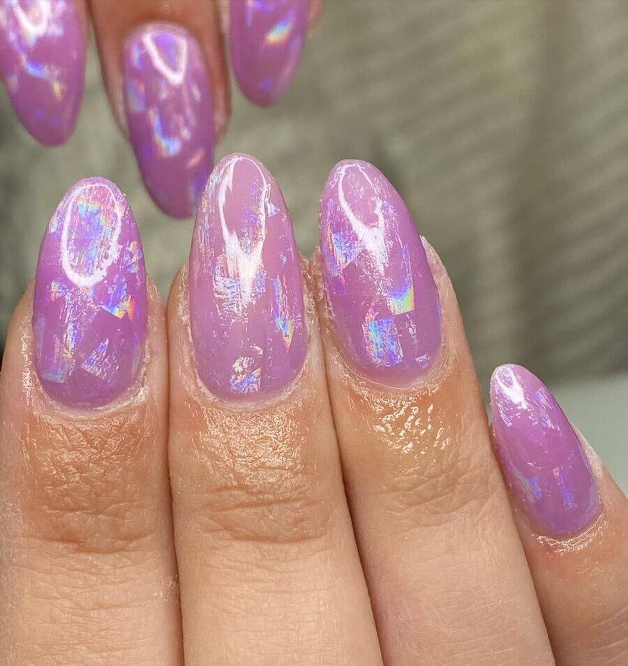 Особенности переливающегося маникюра: как втирать «призму» и «голографик» в лак и гель-лак.