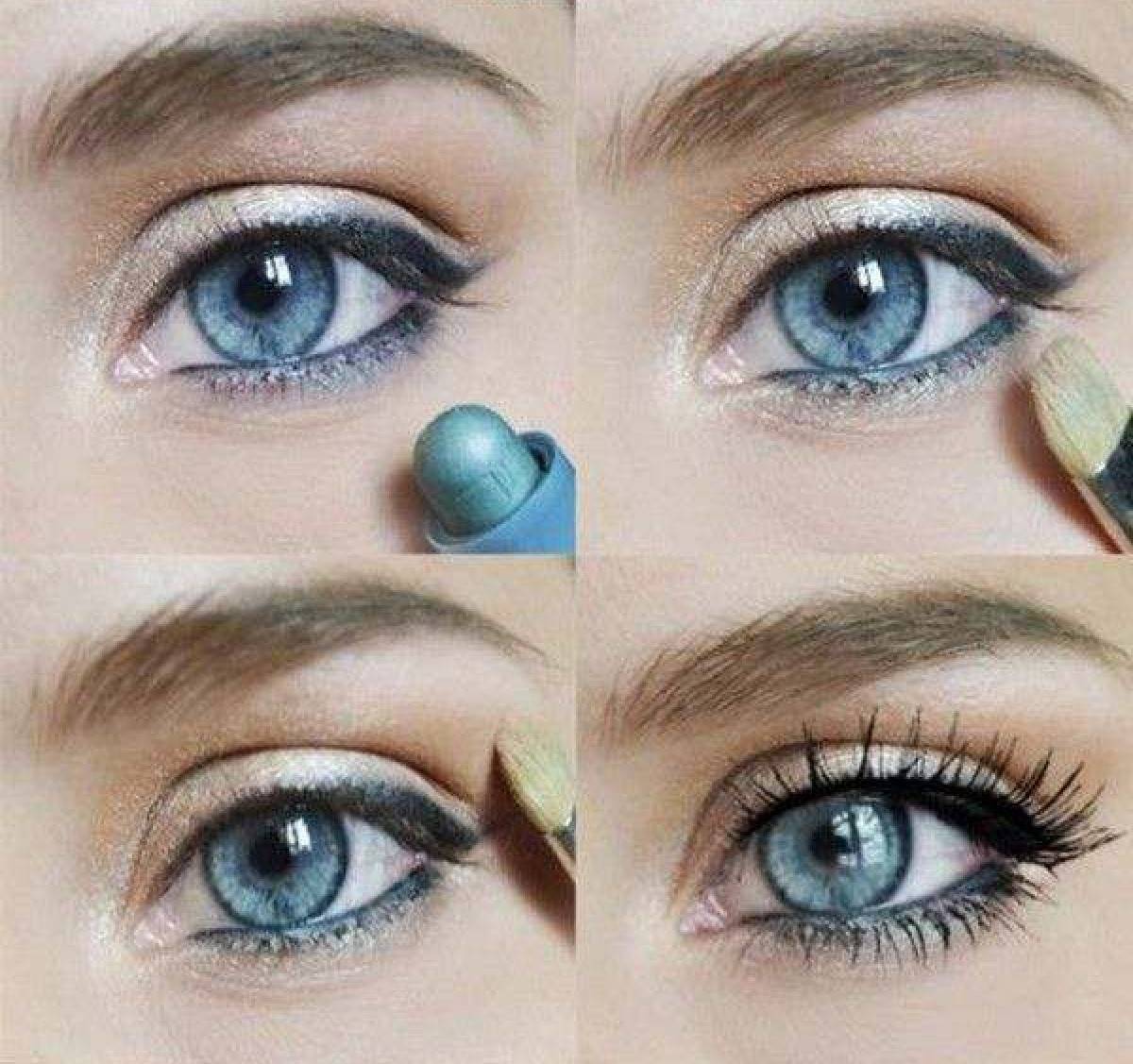 Для макияжа голубых глаз больше всего подходят серые, металлические, перламутровые и синие тени.